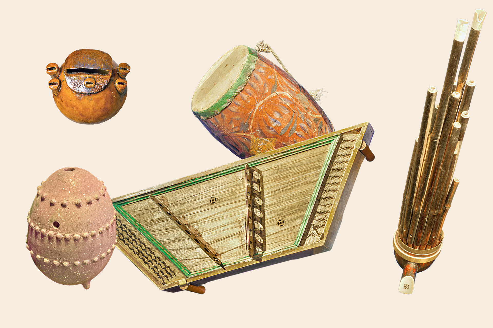 Например, в категорию «земля» входят глиняные свистульки сюнь в виде яйца — это один из древнейших инструментов в мире, самые старые находки датируются VII–V тыс. до н. э. В них могло быть до семи отверстий, что давало возможность играть мелодии. А к категории «тыква» относятся «голубиные дудки» гэшао, которые подвешивали к хвостам почтовых голубей. Дудки изготавливали из оболочек очень маленьких тыкв, размером с мандарин, так что они получались практически невесомыми; в них делали отверстия, и в полете они издавали мелодичные звуки. Это позволяло и различать птиц, и защищать их от хищников, а военные использовали гэшао для обмена сигналами. Когда-то почтовых голубей держали очень многие китайцы, и в небе над городами стоял постоянный шум от «голубиных дудок» — вот почему эти звуки называют «звуками старого Пекина».