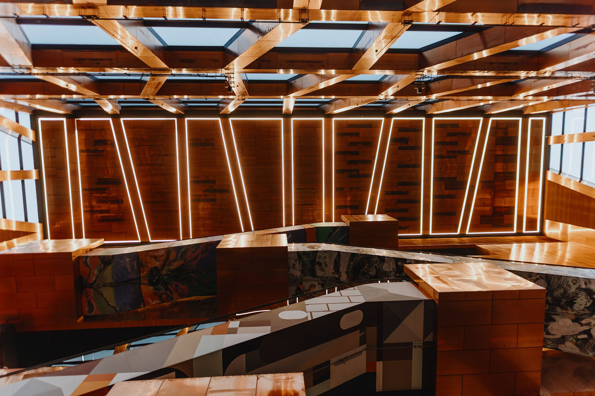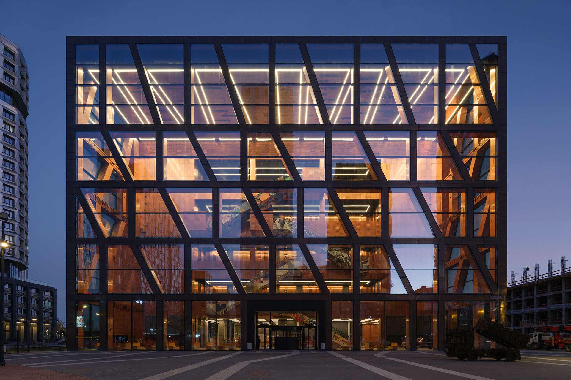 Принявший первых посетителей в декабре 2025-го Музейно-выставочный центр «ЗИЛАРТ» еще до открытия наделал шума. И дело не только в экстравагантном «тизере» — готическом «Самосвале» бельгийского художника Вима Дельвуа, водруженном перед входом, но и во внешнем виде самого музейного здания. Огромный пятиэтажный куб из стекла и меди был возведен по проекту Сергея Чобана и архитектурного бюро СПИЧ. Необычный материал не остался без внимания посетителей: медные панели сразу покрылись отпечатками пальцев. Как признавался Чобан, так было задумано изначально: металл решили не обрабатывать, чтобы он естественно и благородно старел, а заодно хранил историю здания.