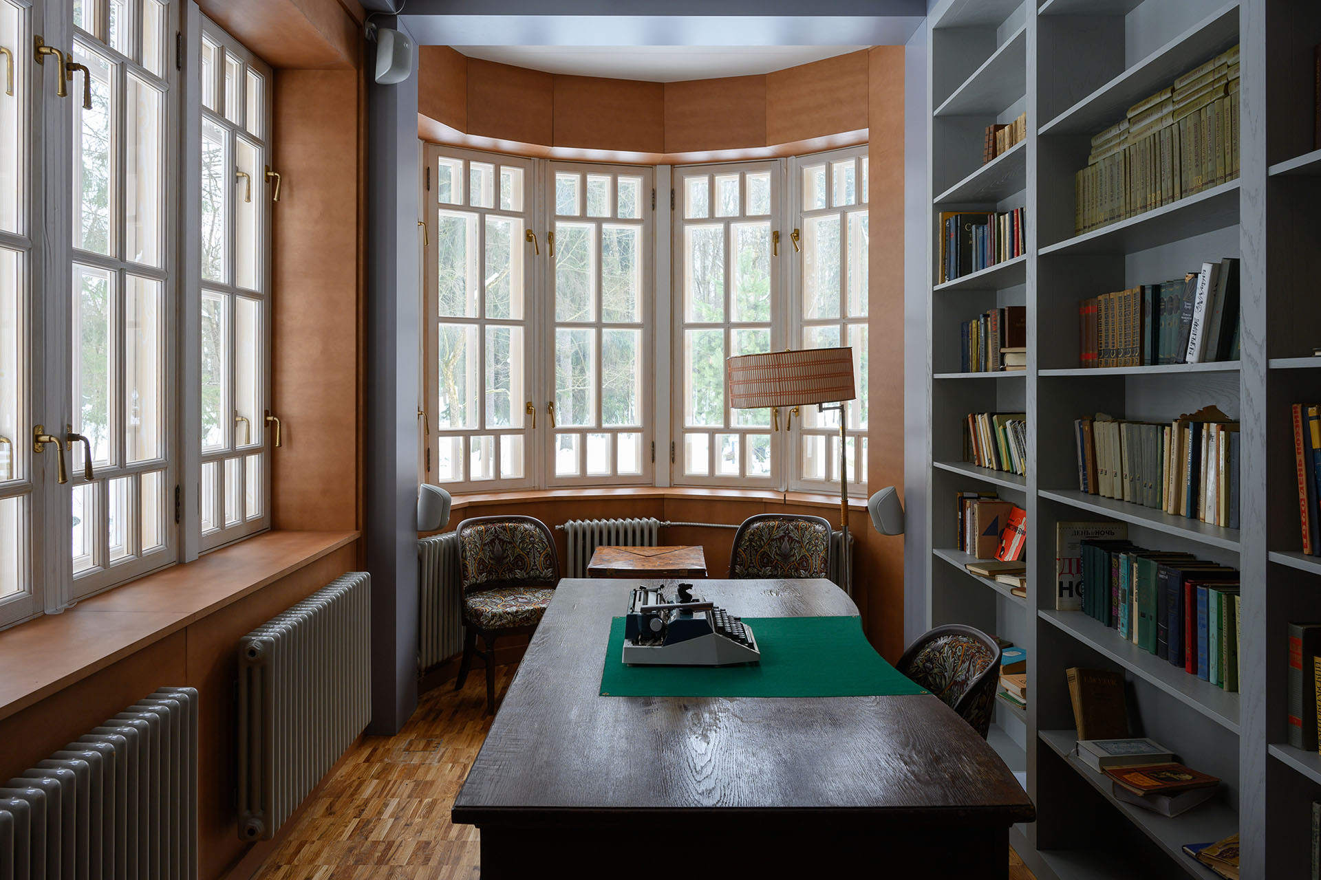 В последние годы дом находился в аварийном состоянии. И реставрация, решение о которой приняли в 2021 году, оказалась настоящим вызовом. О воссоздании мемориальной обстановки речи не шло: музей задумывался как посвященный не конкретному писателю, а сразу всем жителям Переделкина. Поэтому многолетние наслоения — вроде гипсокартонных стен и ламината — решили убрать. И оставили главное — исторические стены и перекрытия.