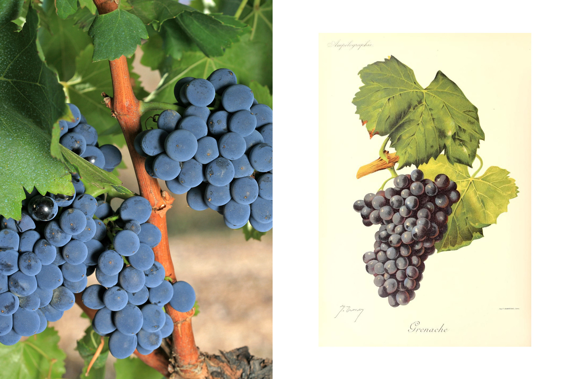 Сорт родом из Арагона в Испании, где его называют «гарнача». Оттуда он мигрировал по всему Средиземноморью и получил новые имена. Например, на Сардинии его называют «каннонау», а во Франции — «гренашем». Но из-за влияния Франции в винном мире именно последнее название стало общепринятым.