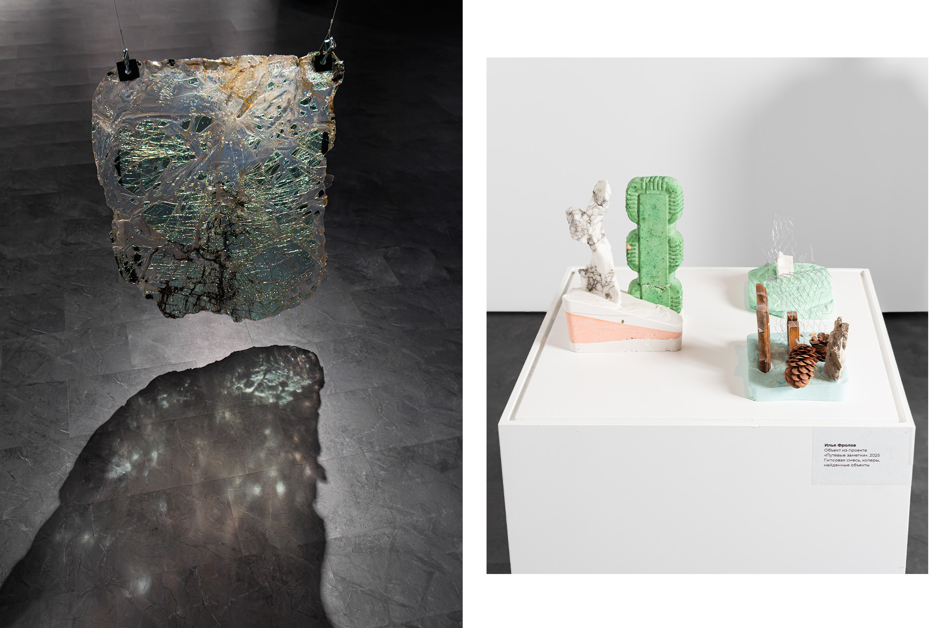 Работы для выставки мы отбирали, руководствуясь не только соответствием теме и тем, что работы сделаны непосредственно в резиденциях, но и тем, какие дополнительные смыслы рождаются в соседстве произведений. Отбор проходил в несколько этапов: сначала был сформирован широкий список, но для показа в Выксе нам пришлось сократить количество работ из-за ограничений экспозиционного пространства. В Екатеринбурге же представлена расширенная версия выставки. При этом мы обратили внимание, что некоторые художники участвовали как в резиденции «Выкса», так и в резиденции фонда «МаксАрт» в Перми — это позволило показать, как творческие практики меняются в зависимости от контекста места. Так, например, на выставке представлены работы Евгении Гильденбрандт, созданные в обеих резиденциях.
