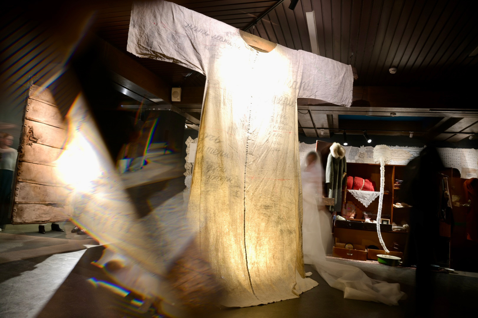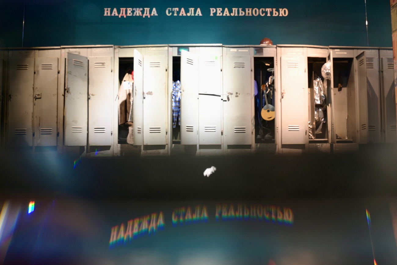 Музей и правда монументален, всё же это памятник советского модернизма. Снаружи — живописный берег Енисея, а внутри — неисчислимое количество залов и уровней. Площадь выставочного пространства здесь — около пяти тысяч кв. м., и львиная доля занята постоянными экспозициями о революции, дореволюционной России и ВОВ, по-настоящему красивыми и образовательными. Автор мысленно сравнила их с Музеем Победы в Москве — в субъективном состязании победил Красноярск и сильнейшая инсталляция с десятками гранёных стаканов, накрытыми куском белого хлеба.