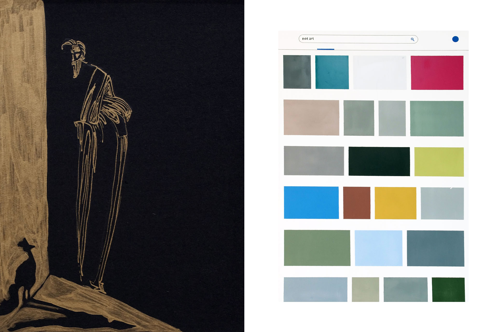 Слева: Ника Клёцки, «Отречение Петра», 2024 год / Владимир Абих, Not art, 2020 год Фото: из личного архива Айка Аджогляна