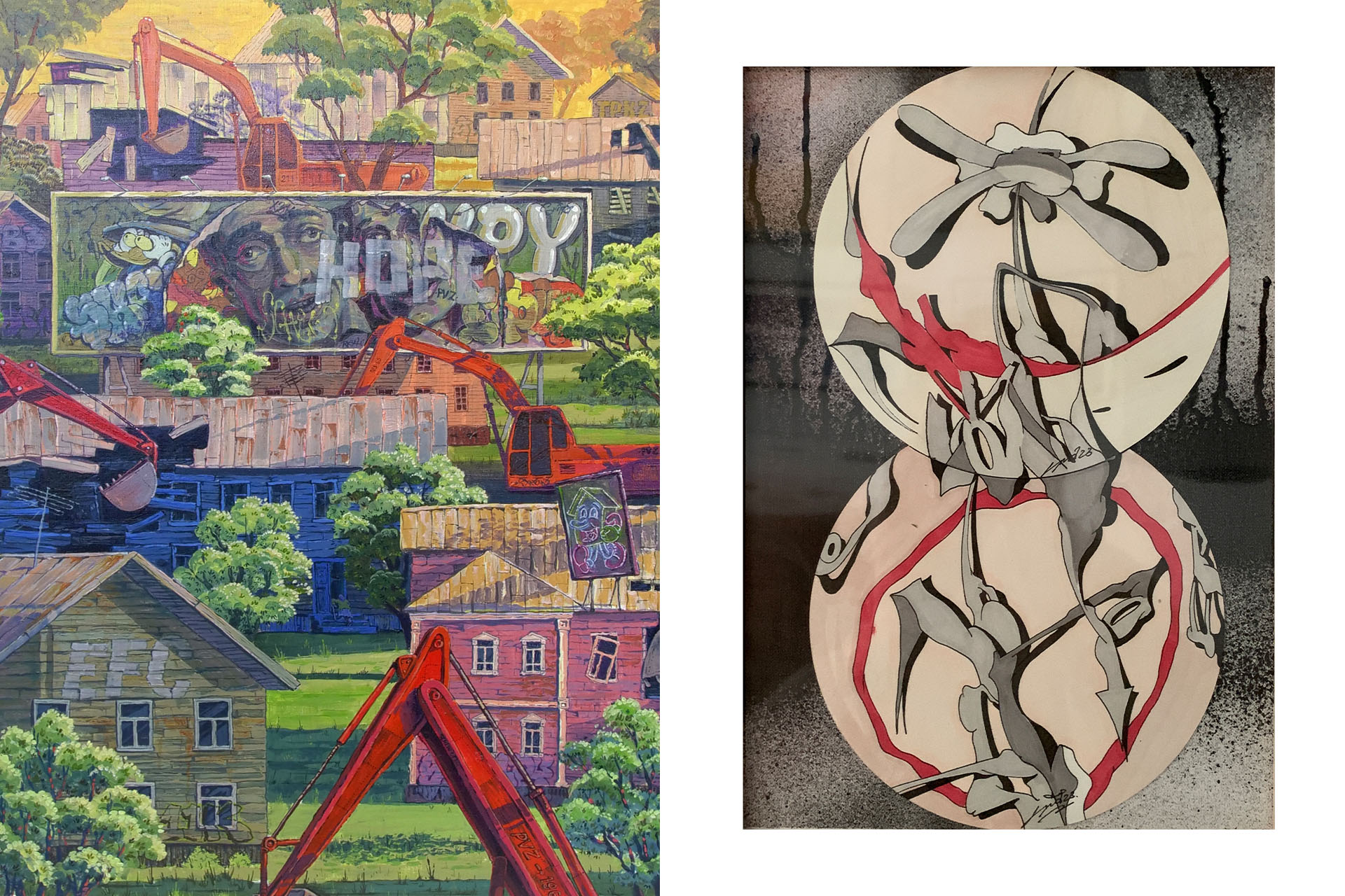 Слева: Михаил Трещёв, The Great disposal, 2023 год / Максим Има, Patreon, 2023 год Фото: из личного архива Айка Аджогляна
