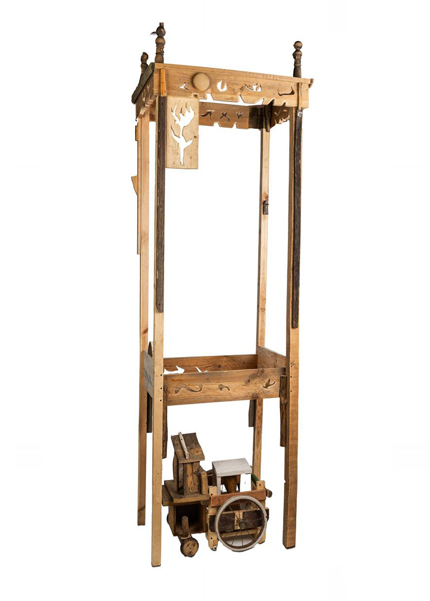 Сама кроватка как «настоящее» — пустая: там пока никого нет. Слишком высокие стенки колыбели напоминают камеру лифта, намекая на возможный духовный подъём. Этой же идее «воскресения души» вторит вырезанный цветок под крышей колыбельки — древнейший символ жизни.