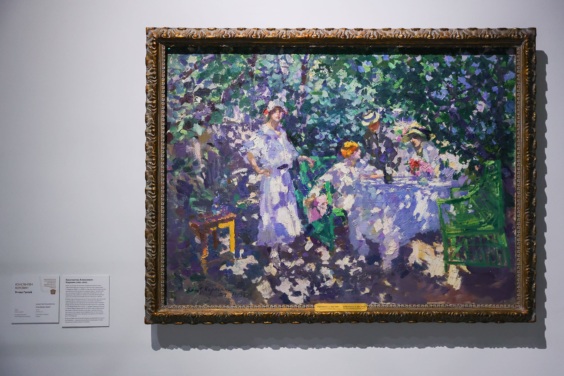 На лето к Коровину приезжали друзья и деятели культуры, среди них — Федор Шаляпин и Сергей Рахманинов. Картина «В саду. Гурзуф» запечатлела теплые встречи и беседы — под сенью листвы уютно расположилась оживленно обсуждающая что-то компания.