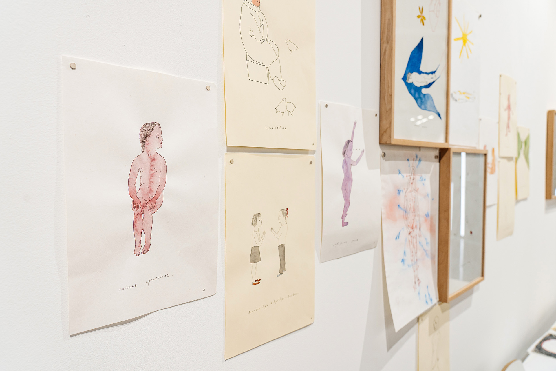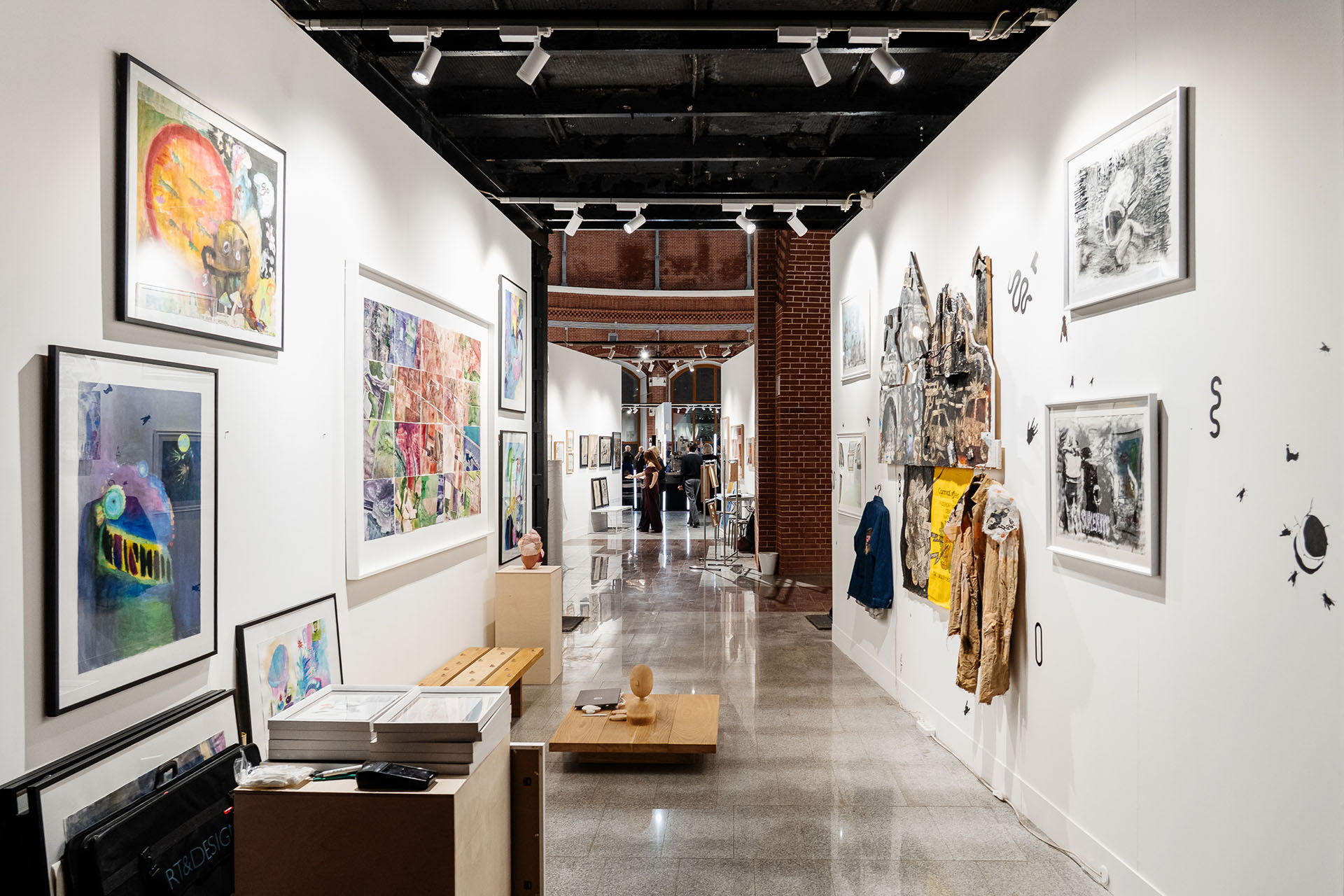 К ярмарке художник галереи Х.Л.А.М Иван Горшков создал объекты в смешанной технике — это фрезеровка по резине с использованием алюминия и силикона. И вот тут даже словарь Власова особо не помогает, потому что изображение вроде бы и двухмерное. А вроде бы представляет собой скорее графическую скульптуру, чем графику, ведь объект трёхмерный сам по себе — он существует вне плоскости холста, так как его нет вообще. К работам Павла Гришина на тетрадных листах у FUTURO или, скажем, к картинам на обоях Ксении Маркеловой у SET Projects вопросов нет. Однако они появятся к десяткам других работ, которые принято считать графикой только из-за того, что они созданы на картоне или бумаге с использованием пастели, карандаша, туши, ручки, маркеров, восковых мелков (нужное подчеркнуть).