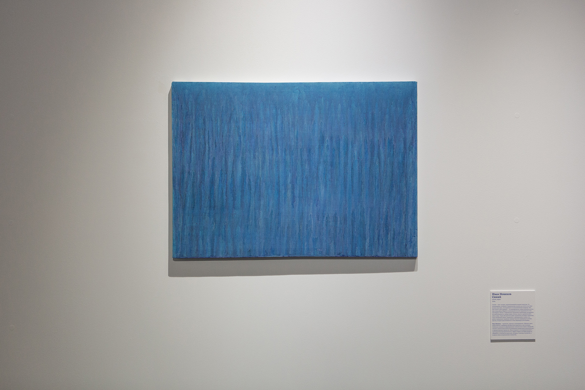 В серии «Синий» художник сосредотачивается на одном из самых нагруженных смыслом цветов в истории искусства. Его живописные полотна не столько изображают, сколько создают состояние — погружение в цвет как в среду. Синий у Новикова становится пространством внутреннего опыта, в котором соединяются тоска, медитативность и почти метафизическая глубина.