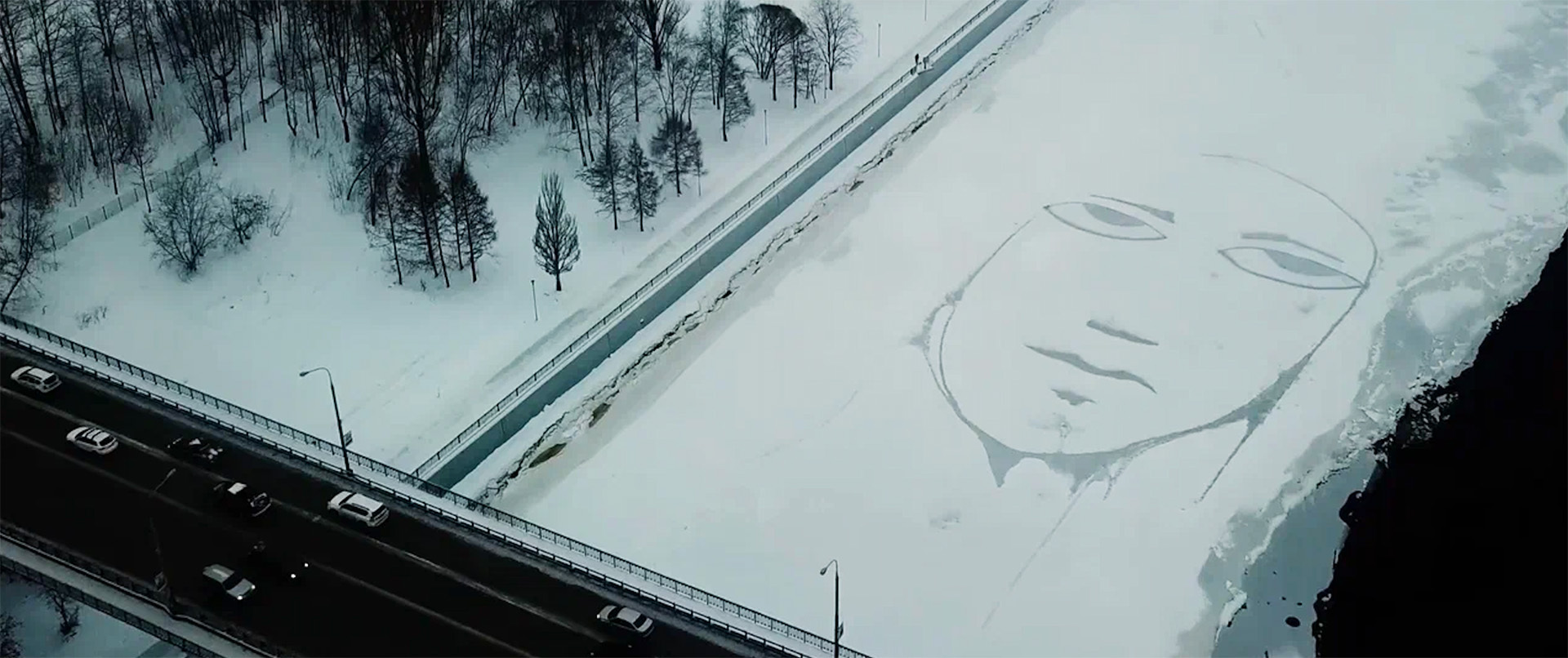 Видео-работа KAMA. SAD FACE фиксирует один из его самых радикальных жестов — создание гигантского изображения на льду реки Камы. Этот акт одновременно является перформансом, ленд-артом и своеобразным ритуалом. Лицо, появляющееся на поверхности льда, наделяет реку субъектностью, превращая природный объект в участника художественного процесса. Илькаев работает с темой неизбежности — исчезновения образа, памяти, самого художественного жеста. Поверхностное натяжение здесь — это граница между присутствием и отсутствием.