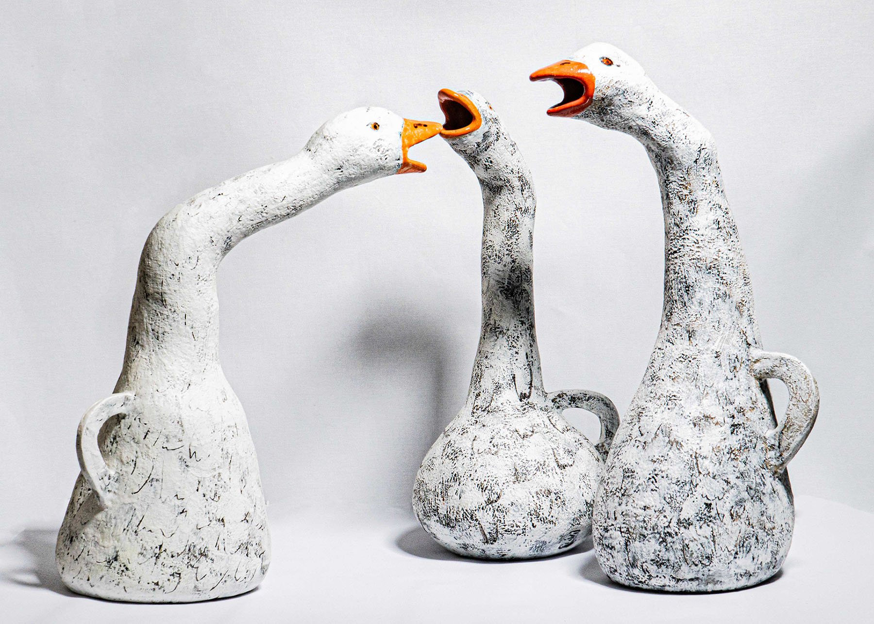 Её основные скульптуры антропоморфны. Мысленно следуя за изгибами поверхности как по волнам подсознания, Екатерина соединяет их символы и знаки с узнаваемыми объектами.
