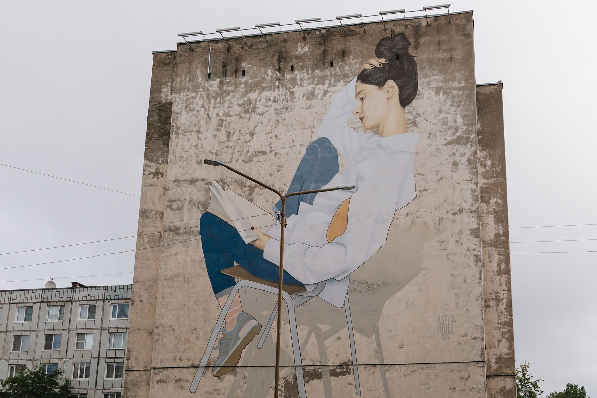 Фестиваль проходит уже 5 год, и за этот период, конечно, много разных тем поднималось. Мы начинали в спальном историческом районе Роста. Там сразу несколько муралов на тему оттока населения из Мурманска. Уезжает в основном молодое поколение – это большая проблема.