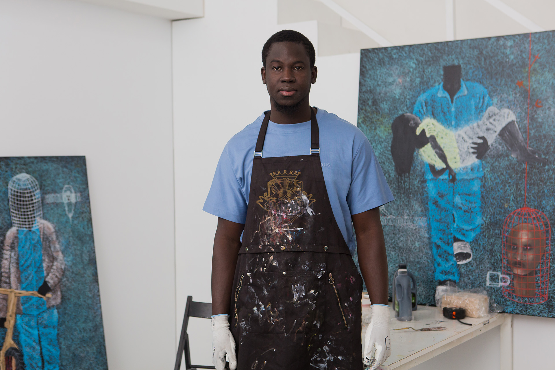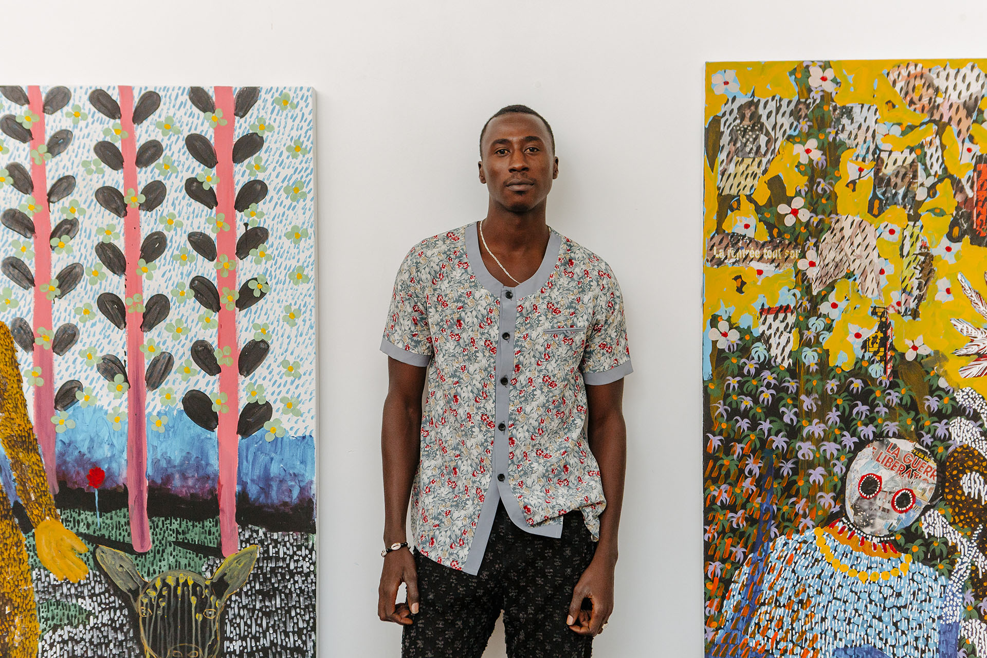 Художник-живописец создаёт масштабные фигуративные картины, отражающие его видение идеального мира — где люди живут в гармонии с природой. Соединяя в работах нейтральные тона и акцентные принты, Сейду буквально гипнотизирует зрителя и заставляет задуматься о том, как тот влияет на окружающий мир и наоборот.
