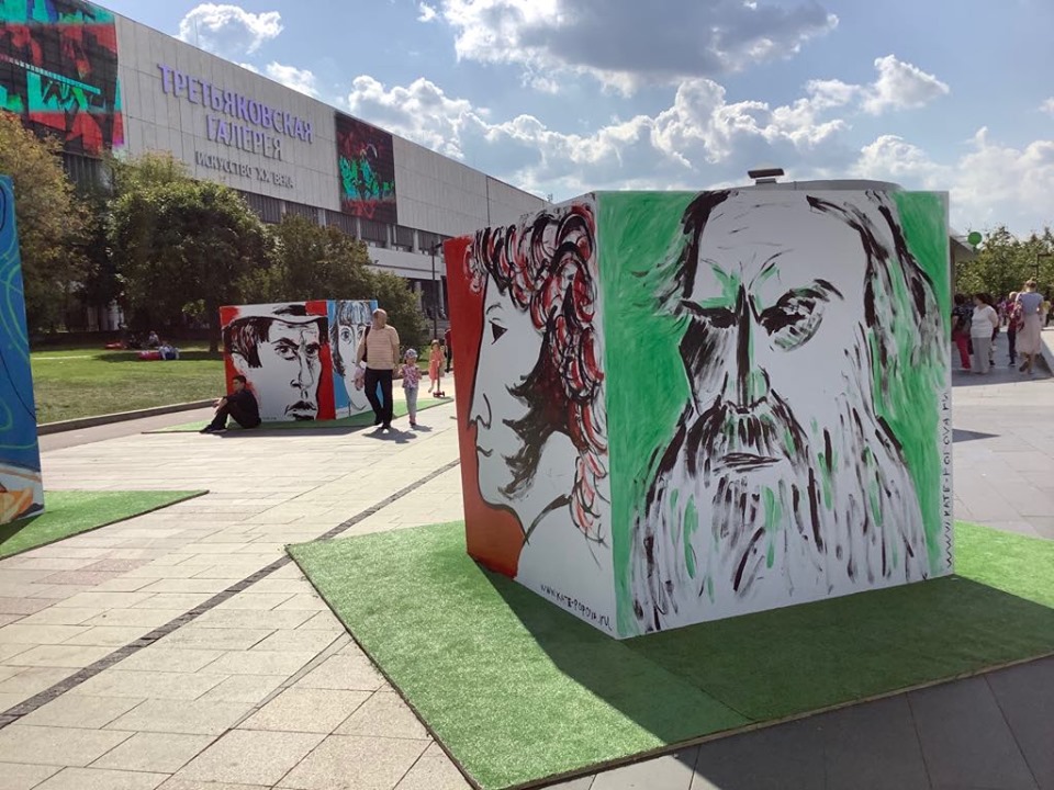 Можно бесконечно смотреть на огонь и человека, который занимается творчеством. Это я ощутила на себе, когда толпа зевак окружила меня, а я на больших белых кубах размашистыми мазками писала большие портреты русских классиков. Действие, когда творчество выплескивается на белое полотно и превращается в образ, сравнимо с магическим актом. Для художника это всегда вхождение в особое пространство: ты не чувствуешь усталости, на тебя не действуют раздражители привычного мира, такое ощущение, что находишься под каким-то загадочным потоком, который льется на тебя вопреки всем законам физического мира и превращает тебя в инструмент творчества. Смотря на некоторые свои работы, я порой удивляюсь, как такое могло получиться, неужели я написала это своей рукой