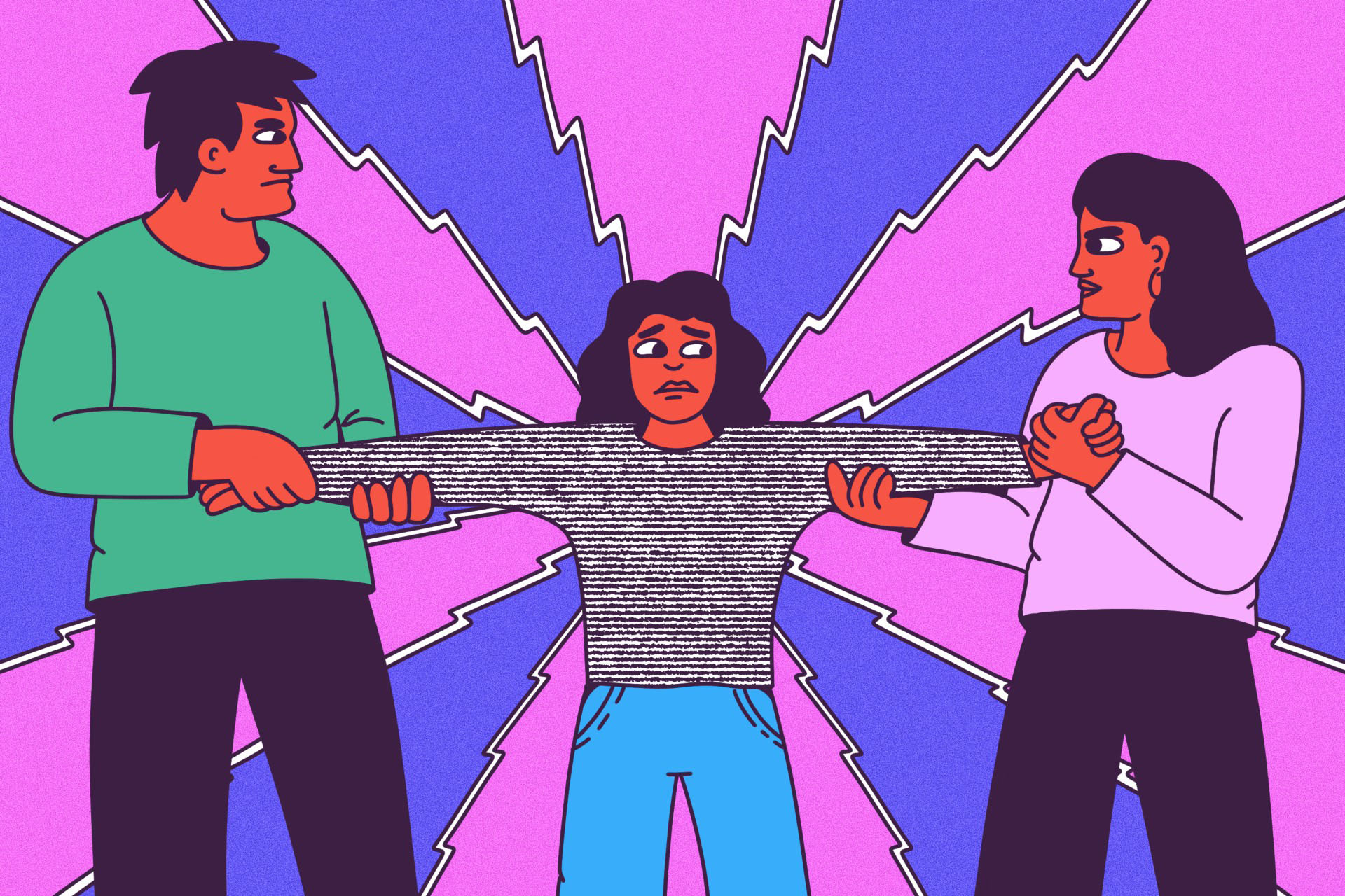— Но я с тех пор не могу из этого вылезти. До того как развестись, они ещё несколько лет ежедневно ругались. И каждый старался перетянуть меня на свою сторону: «Ты посмотри, дочь, как она (или он) неправа! Ты же со мной согласна?» Я сначала отказывалась соглашаться, а потом поняла, что согласиться — намного выгоднее…