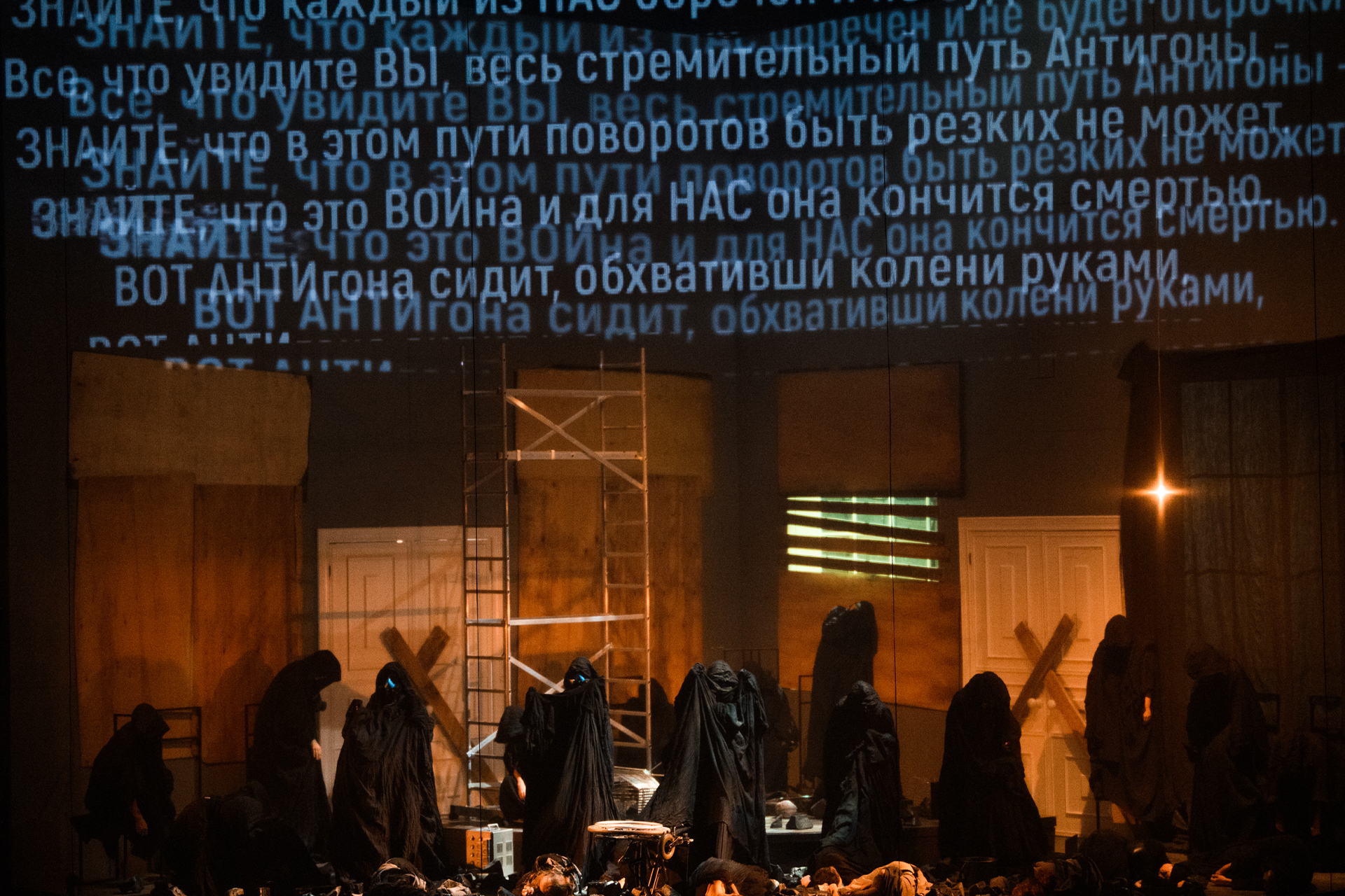 Спектакль-событие, перевернувший наши представления о мюзикле. Хотя композитор Ольга Шайдуллина определяет жанр своего произведения как «оперу для драматических артистов», где кашель и хрипы горожан в противогазах сочетаются с убийственным рэпом. Либреттист Женя Беркович, в свою очередь, соединила величественную поступь гекзаметра с простонародной речью, и за этот текст спектаклю следовало бы дать еще одну «Маску». История упрямой Антигоны, которая стремится похоронить брата ценою собственной жизни и выше государственного закона ставит закон нравственного долга, сегодня звучит обжигающе актуально.