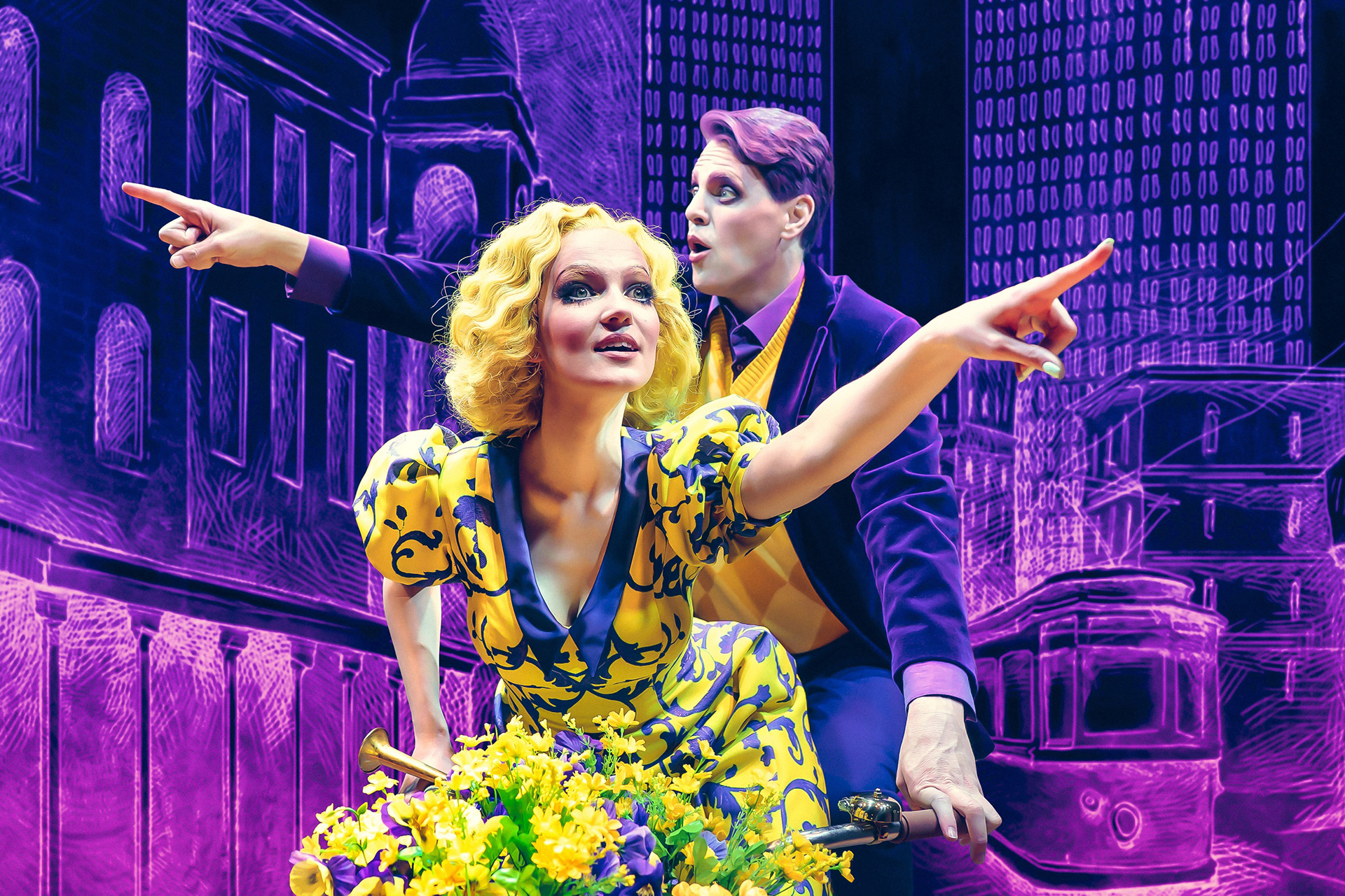 Если летом захочется чего-то более легкого и развлекательного, обратите внимание на новый мюзикл Алексея Франдетти. От обычных масштабных постановок в этом жанре он отличается, во-первых, камерностью — на сцене всего два артиста, Юлия Дякина и Иван Ожогин (в другом составе — Павел Левкин), а во-вторых, юмором. Кислотные цвета, яркие костюмы, грим и парики превращают банальную историю о сиротке из приюта и её богатом тайном покровителе в ироничное фрик-шоу, дополненное забавной анимацией. Что, впрочем, не отменяет трогательности этой классической love story.
