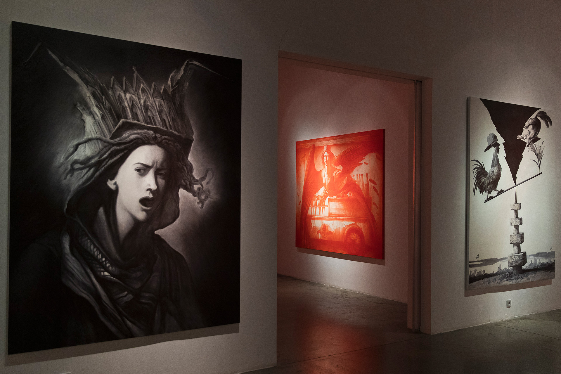 Персональная выставка Егора Кошелева «Красные и чёрные» подводит итог его интенсивной художественной работы за год. Экспозиция объединяет два живописных цикла, созданных в рамках проектов в Иванове и Нижнем Новгороде, и выстроена вокруг сознательного отказа от многоцветной палитры. Ограничившись красным и чёрным, художник сосредотачивается на образах, композиции и интонации, предлагая зрителю более строгий и прямой разговор о возможностях живописи сегодня. В новых работах Кошелева меньше иронии и стилистических цитат — вместо них появляются сдержанность, пластическая дисциплина и внимание к внутреннему напряжению образа.