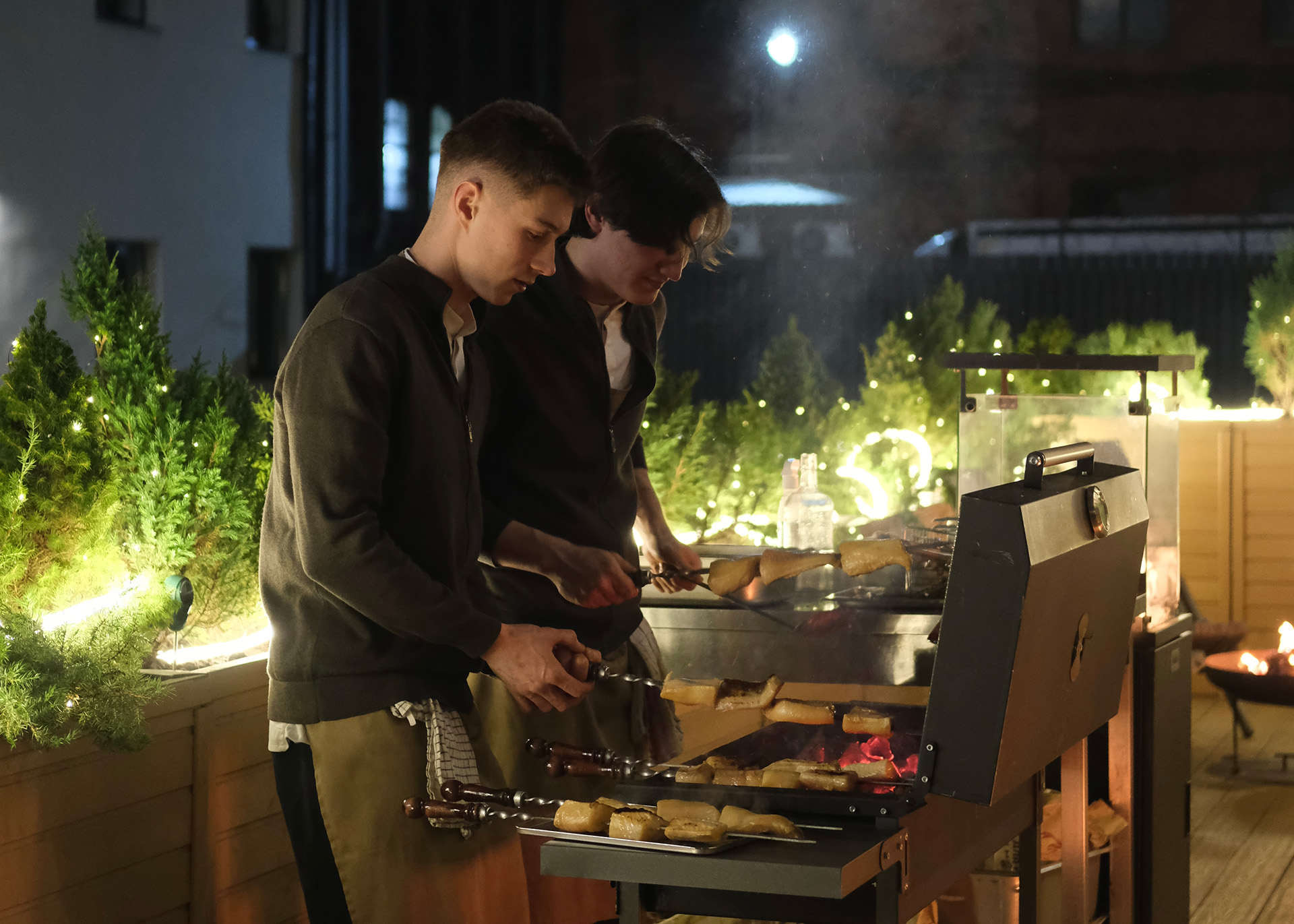 В последние дни новогодних каникул — 9, 10 и 11 января — на террасе ресторана Harvest проходит гастрономический проект «Бранч у костра», созданный совместно с командой Reborn. Формат объединяет две ключевые линии Duo Band: внимание к овощам и сезонным продуктам Harvest и мясную кухню Reborn, приготовленную на открытом огне. В специальное меню вошли блюда «с углей» — от трески в мисо-маринаде и запеченного картофеля с щучьей икрой до стейка рибай и копченого ребра бычка. Проект выстроен как городской вариант загородного отдыха — с живым огнем, простой и выразительной едой и неспешной атмосферой зимнего бранча.