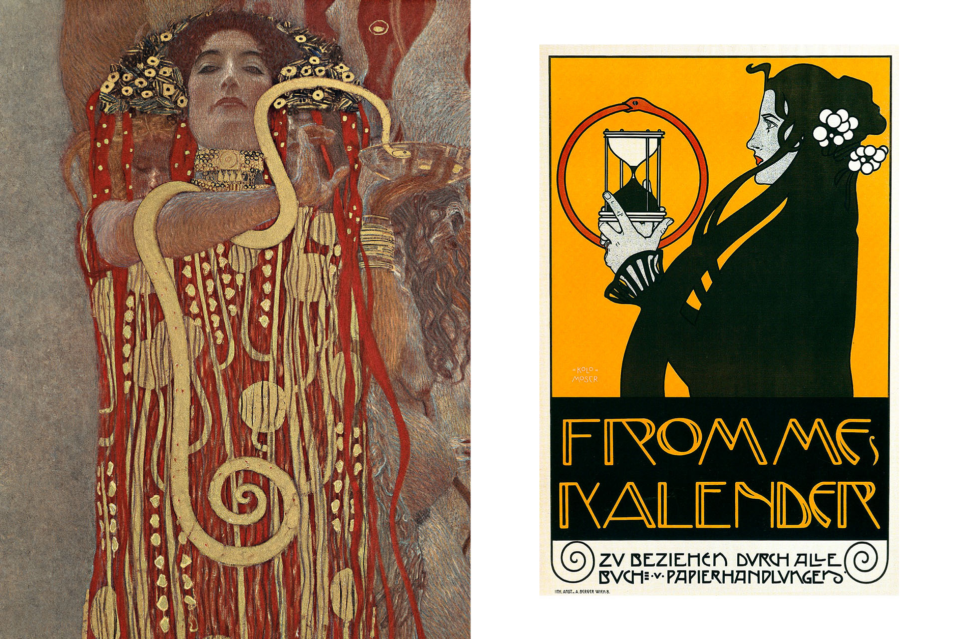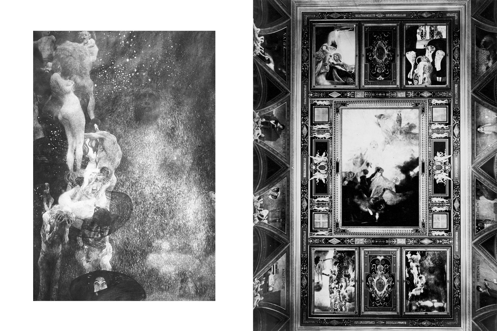 Начало его творческого пути было неудачным. Одной из популярных тем конца века была «борьба полов», в которой женщины одерживали победу над мужчиной. Климт задумал невообразимое: представить мир через мужские и женские символы из мира фрейдистских сновидений в чувственном и эротизированном орнаменте. Он создал три декоративных панно для Большого зала Венского университета: «Философия», «Юриспруденция» и «Медицина». В «Философии» обнажённые мужчины и женщины плывут в трансе, не контролируя выбранного направления. В «Юриспруденции» женщины и мужчины застыли в полусне, выражая чувство неуверенности в мире. Наконец, в «Медицине» тела людей несёт вперёд поток жизни. В нём все стадии: от рождения до смерти, от восторга до боли. Скандал, спровоцированный «безнравственными» полотнами Климта, обсуждали в Парламенте и вынесли вердикт продать их частным лицам. «Философию» купил один промышленник, а «Медицину» и «Юриспруденцию» приобрёл Коломан Мозер. Сейчас от грандиозного замысла Климта остались лишь фотографии. В мае 1945 года при отступлении войск СС все полотна Климта сгорели в замке Иммендорф.