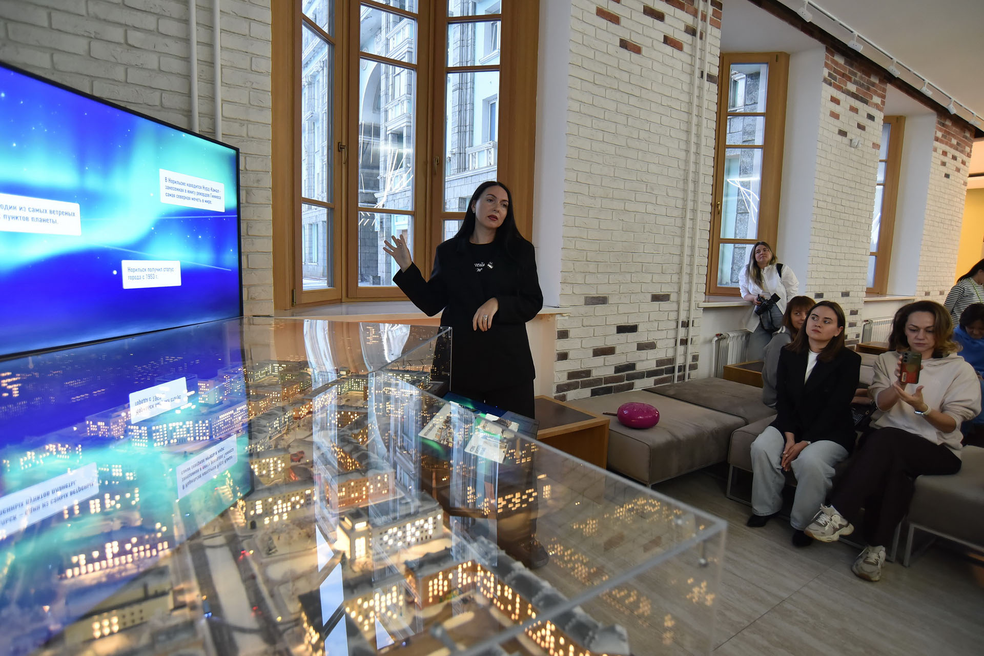 В фойе «Башни» представлены макет центральной части города и интерактивная 3D-панорама. В готовящемся к открытию «Кабинете архитектора» можно будет подробнее узнать о том, как застраивался Норильск, рассмотреть макеты барельефов, изучить генеральный план города и познакомиться с жизнью советского архитектора Витольда Непокойчицкого, его супруги Лидии Миненко и архитектора Микаэла Мазманяна, которые этот город и спроектировали.