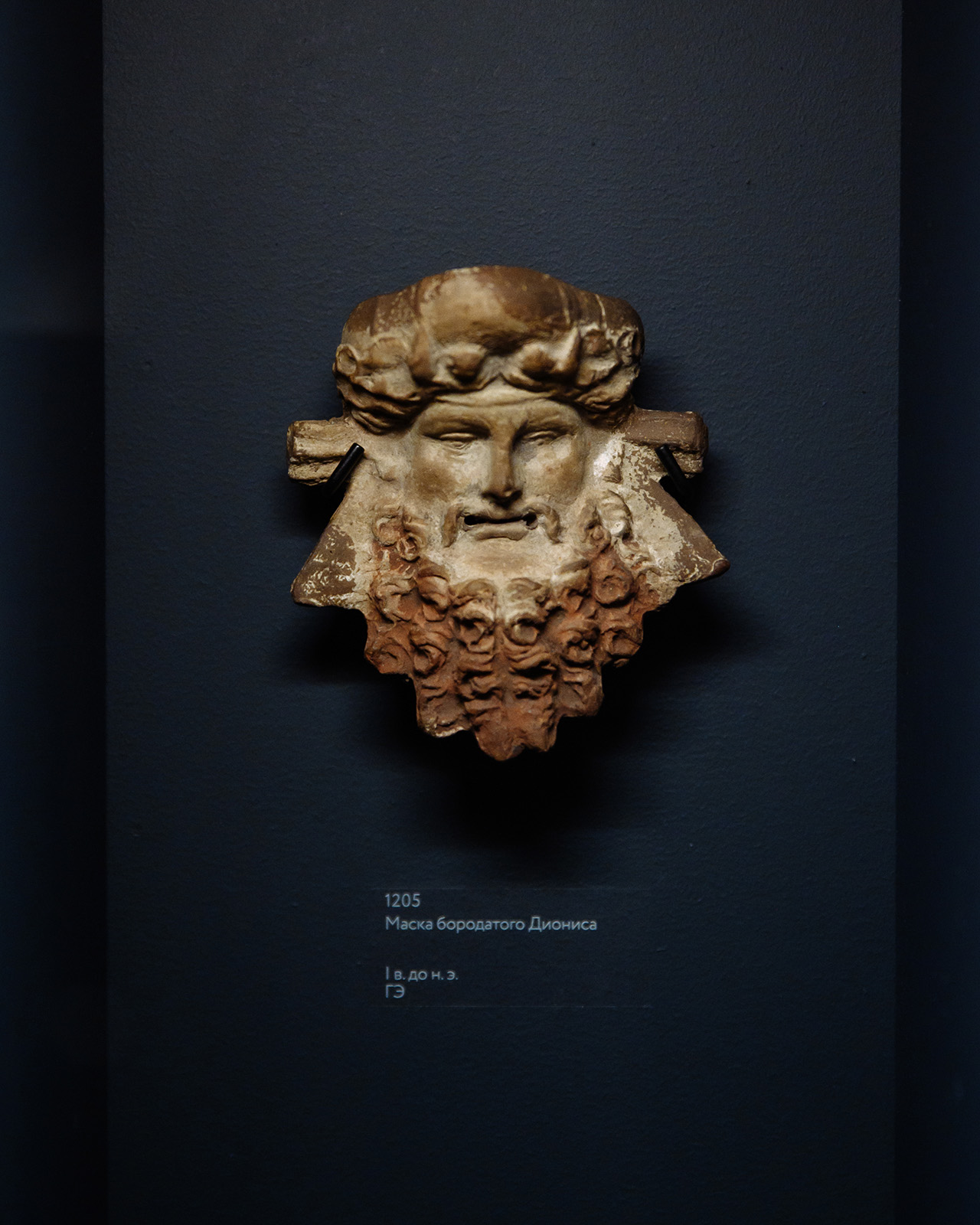 Дионис тесно связан с театром — театральные представления возникли из культа Диониса. Люди устраивали процессии в его честь, изображая участников шествия, а затем начали создавать спектакли. Однако на Боспоре почитание Диониса имело свои особенности. Этот бог виноделия был особенно важен для жителей, которые мечтали выращивать виноград, но столкнулись с трудностями. В Крыму виноград не рос до конца IV века до нашей эры, а на Тамани — только с I века нашей эры. Кроме того, Дионис считался покровителем Востока и, по легенде, совершил поход до Индии, где завоевал новые земли. Поэтому на Боспоре, граничащем с враждебным миром, люди находили опору в Дионисе не только как в боге, но и просто наслаждаясь вином.