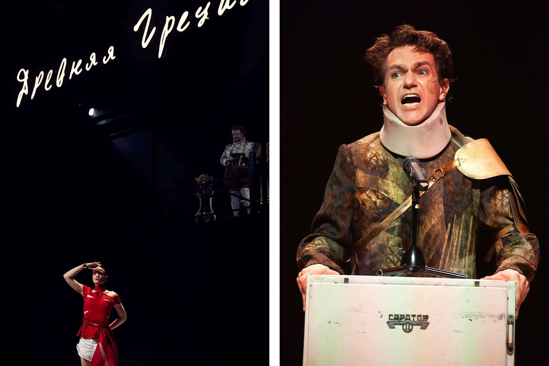 И, конечно, режиссёр сохраняет старую театральную традицию: спартанку Лампито играет мужчина. Но сегодня это уже не просто игра в древний канон — а метафора, которая добавляет спектаклю ещё один слой иронии.