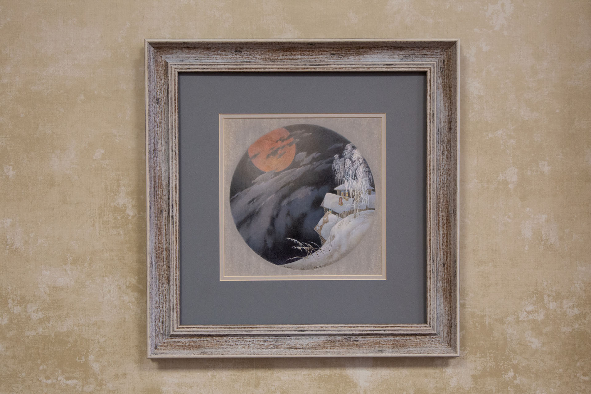 Работы Михаила Комарова, напротив, отходят от привычного для промысла. В определённый момент пейзаж становится для него главным — художник даже признавался, что больше не хочет писать лица, брать темы общества и государства, чему-то учить. Его миниатюра «Космос за околицей» даёт, казалось бы, простой сюжет: справа — заснеженная избушка, огонь в окнах, деревья под снегом; слева — доминанта композиции: огромная огненная луна, облака и звёзды. Но возле этой живописи легко задержаться — и думать о месте человека во вселенной, о хрупкости жизни. Сдержанными средствами автор передаёт глубокие чувства: надежду, благодарность и боль, восхищение и молитву.