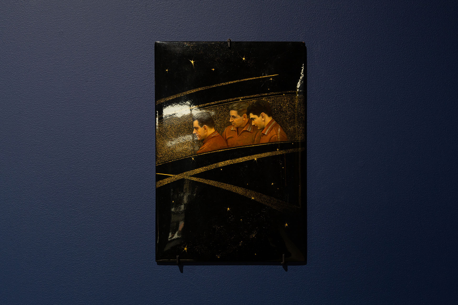 Виктор Липицкий, «Три космонавта», Федоскинская фабрика миниатюрной живописи, 1964 год Фото: Арман Тадевосян / пресс-служба музея «Новый Иерусалим»