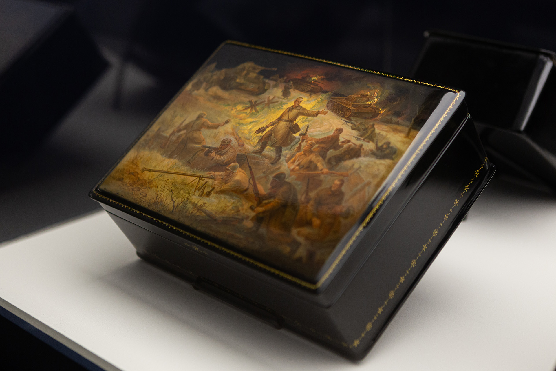 Александр Фёдоров, ларец «Панфиловцы. Великая Россия, а отступать некуда, позади Москва», 1996-1997 годы Фото: Арман Тадевосян / пресс-служба музея «Новый Иерусалим»