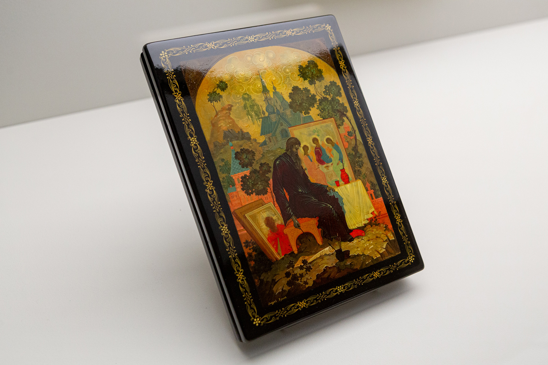Владимир Белов, шкатулка «Андрей Рублёв», Холуй, 1965 год Фото: Арман Тадевосян / пресс-служба музея «Новый Иерусалим»