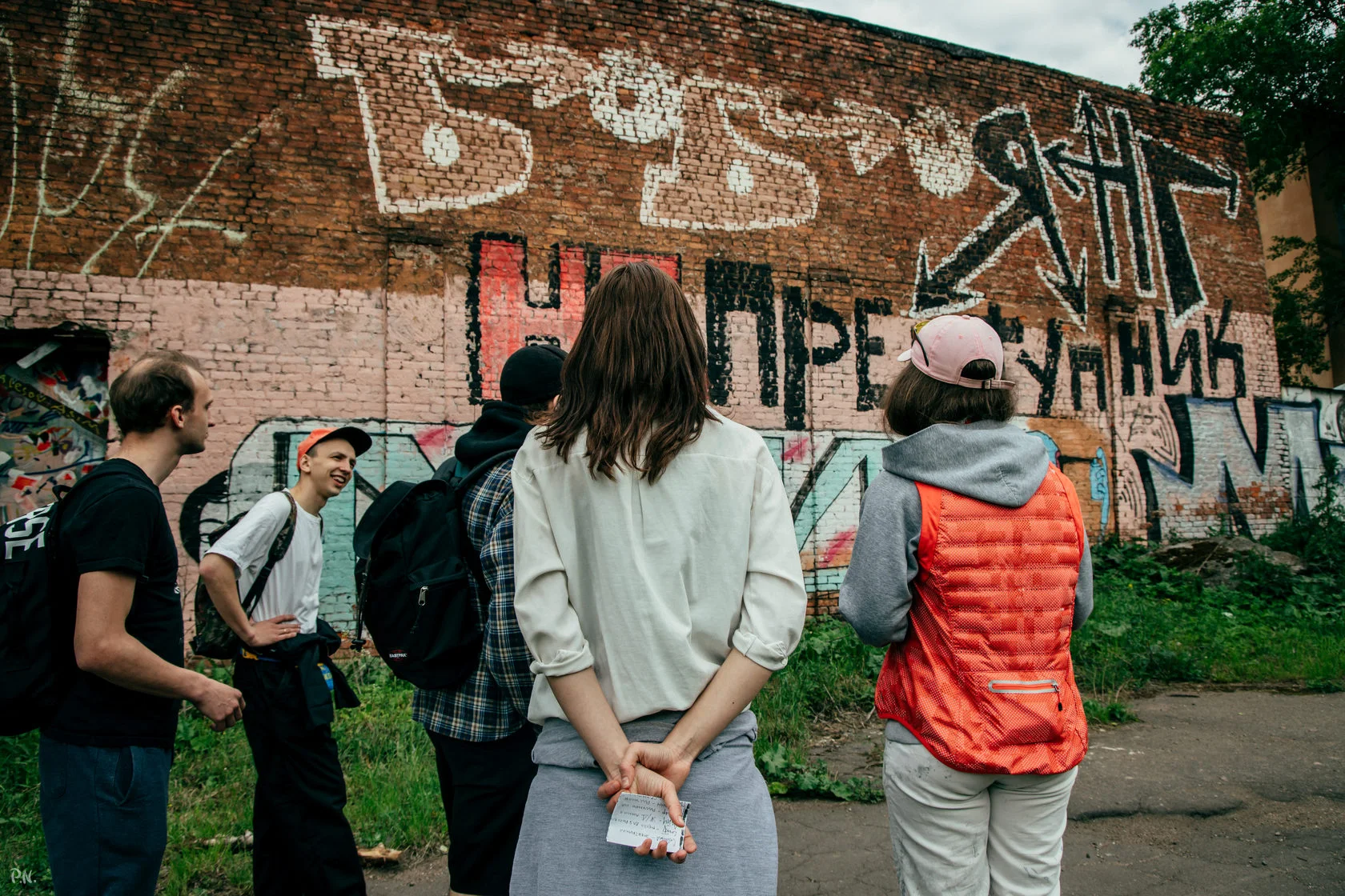 Например, один из самых значимых проектов нашей команды в жанре сайт-специфик — это «4elovekvmaske». Он появился так: я познакомился с Никитой Касьяненко, артистом и граффити-художником, и нам стало интересно рассказать про стрит-арт через историю свидетеля и носителя этой культуры. Можно было поставить спектакль на сцене-коробке, но зачем затаскивать в театр улицу, если можно попробовать погрузить зрителя в атмосферу стрит-арта, на короткое время дать почувствовать на собственной коже то, как живёт граффити-артист. Так возник променад.