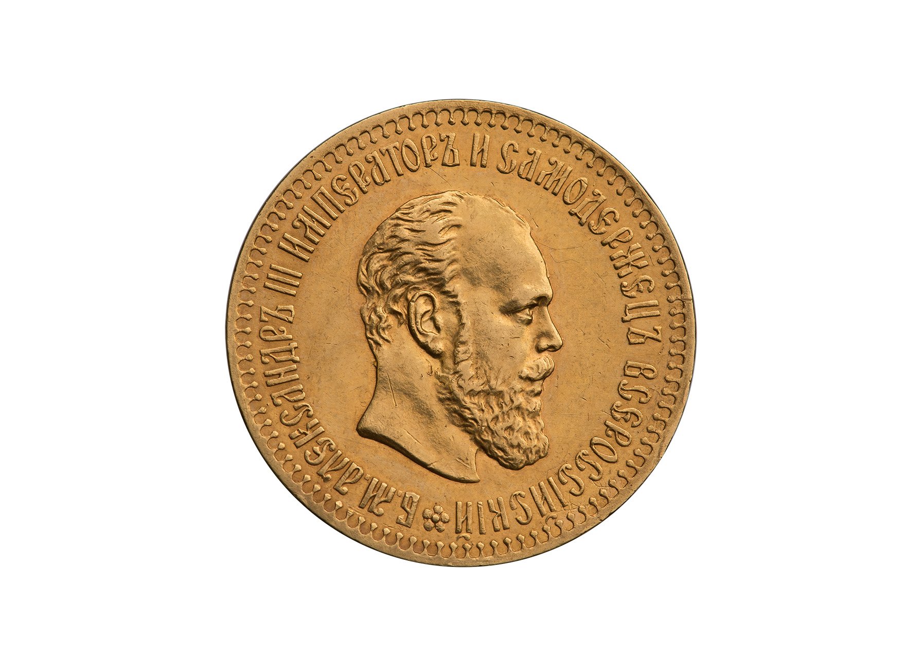 Начиная с Павла I на российских монетах перестают чеканить облик эмитента, и лишь при Александре III профиль монарха возвращается на аверсы монет. До 1796 года на монетах династии Романовых неизменно присутствовали портреты правителей. Затем портрет императора перестал быть обязательным элементом монет регулярного выпуска, появляясь лишь на монетах для окраин, памятных и подарочных экземплярах. За годы правления Александра III выпускались золотые монеты трёх номиналов с его портретом: 3, 5 и 10 рублей.