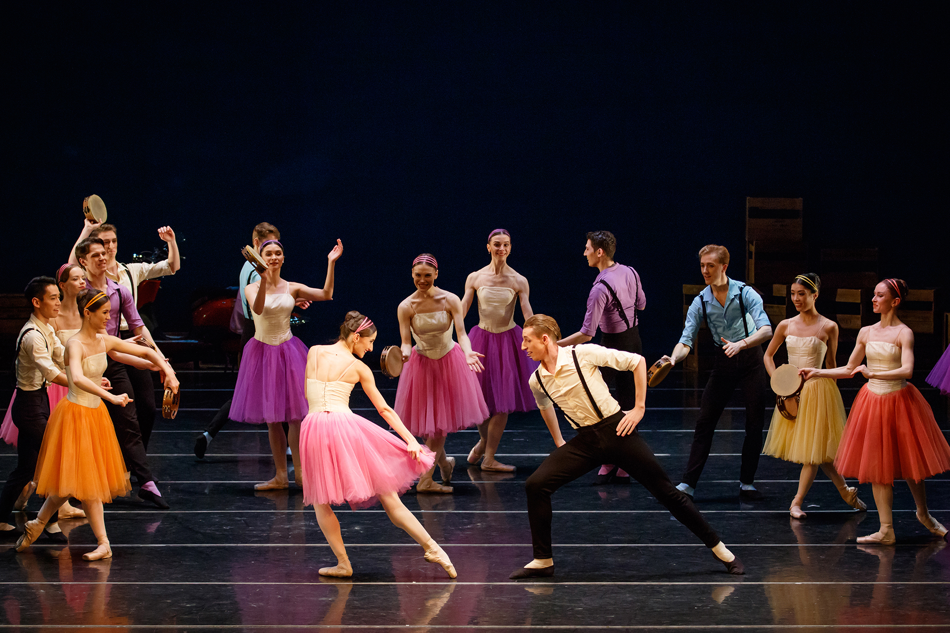 Балерины — в белоснежных белых пачках, на пуантах, но хореография порой рваная, ломаная. Движения солистов пафосные, академически отточенные — и вдруг танцовщицу утаскивают за боковые кулисы чуть ли не за ноги.