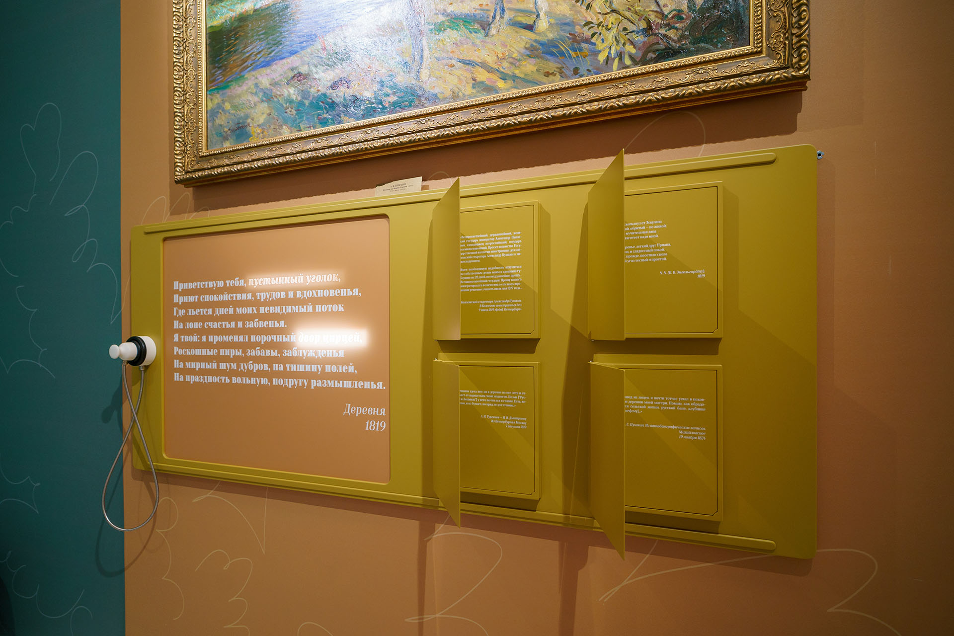 Экспозиция выставки «Эмоции природы, природа эмоций. Пушкинский литературный ландшафт» в музее-заповеднике А. С. Пушкина «Михайловское» Фото: бюро «Метаформа»