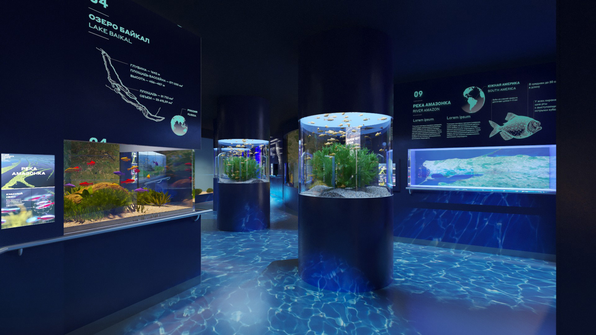 Зал «Аквариумы» — знакомит с обитателями больших рек и глубоких озёр, коралловых рифов и мангровых зарослей, открытого океана и литорали.