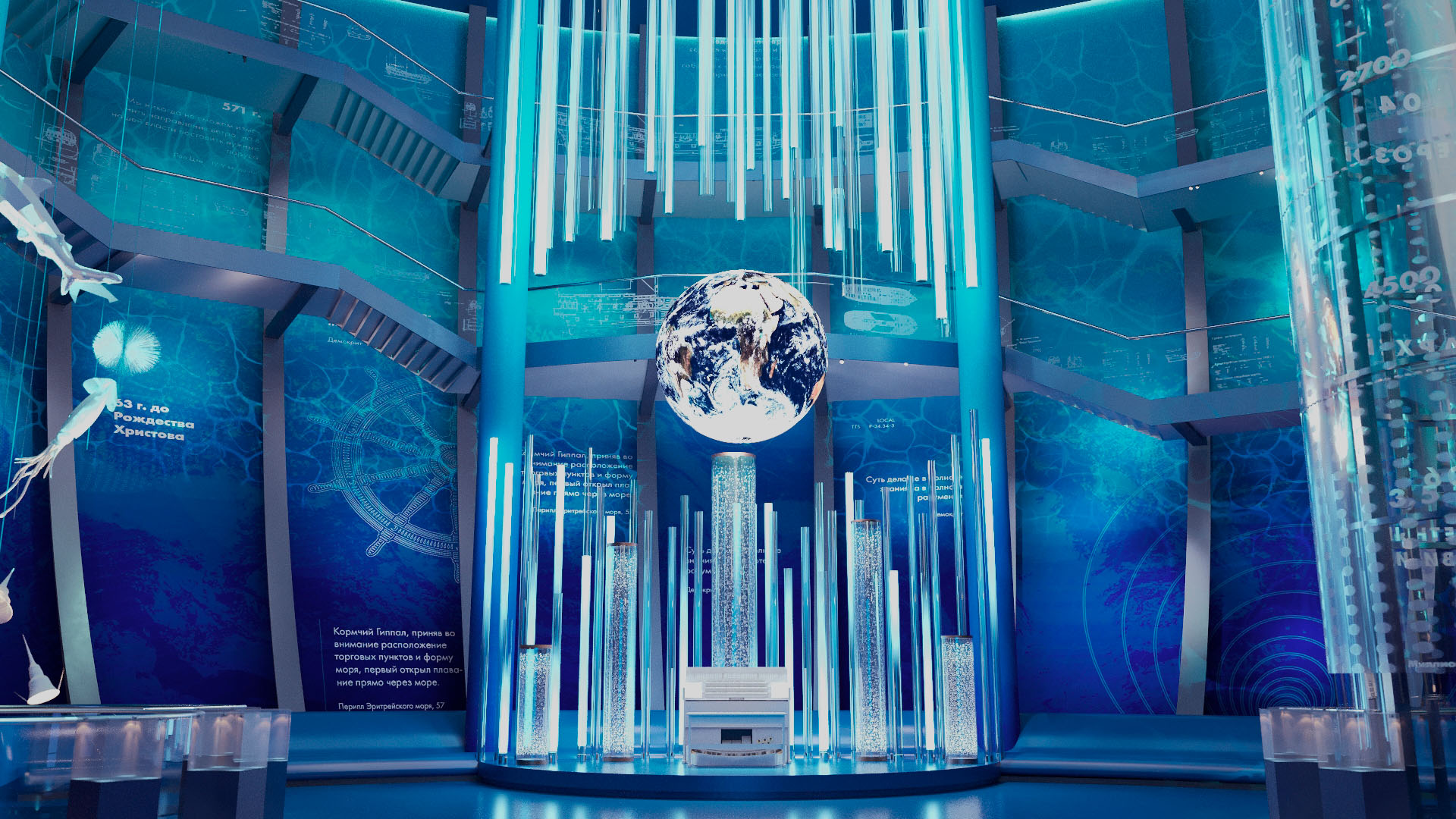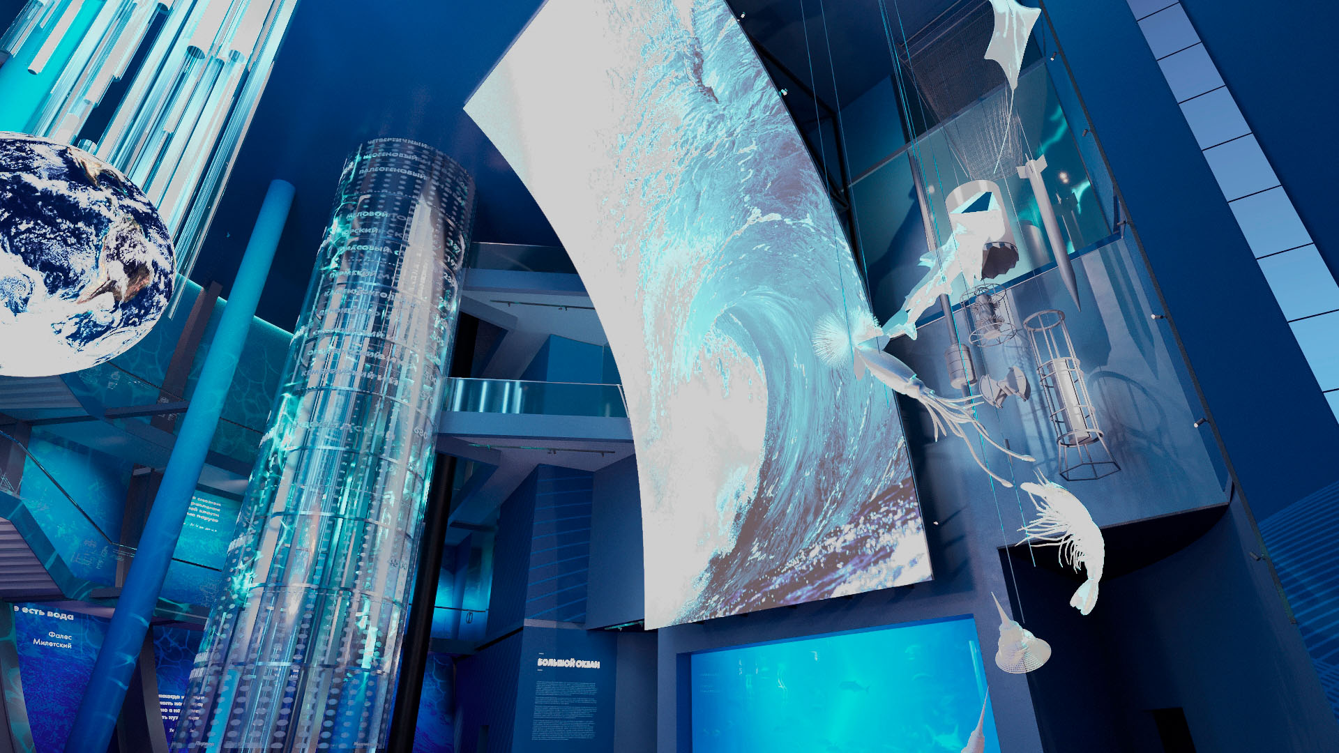 Сердце нового корпуса — зал «Большой Океан». Его центральный элемент — огромная светодиодная «волна» высотой 16 метров. По словам Президента музея Светланы Сивковой, именно эта деталь стала отправной точкой для всего внутреннего пространства: «В проекте был только шар, и внутри шара была волна. Этот зал стал своеобразным храмовым пространством», — вспоминает она.