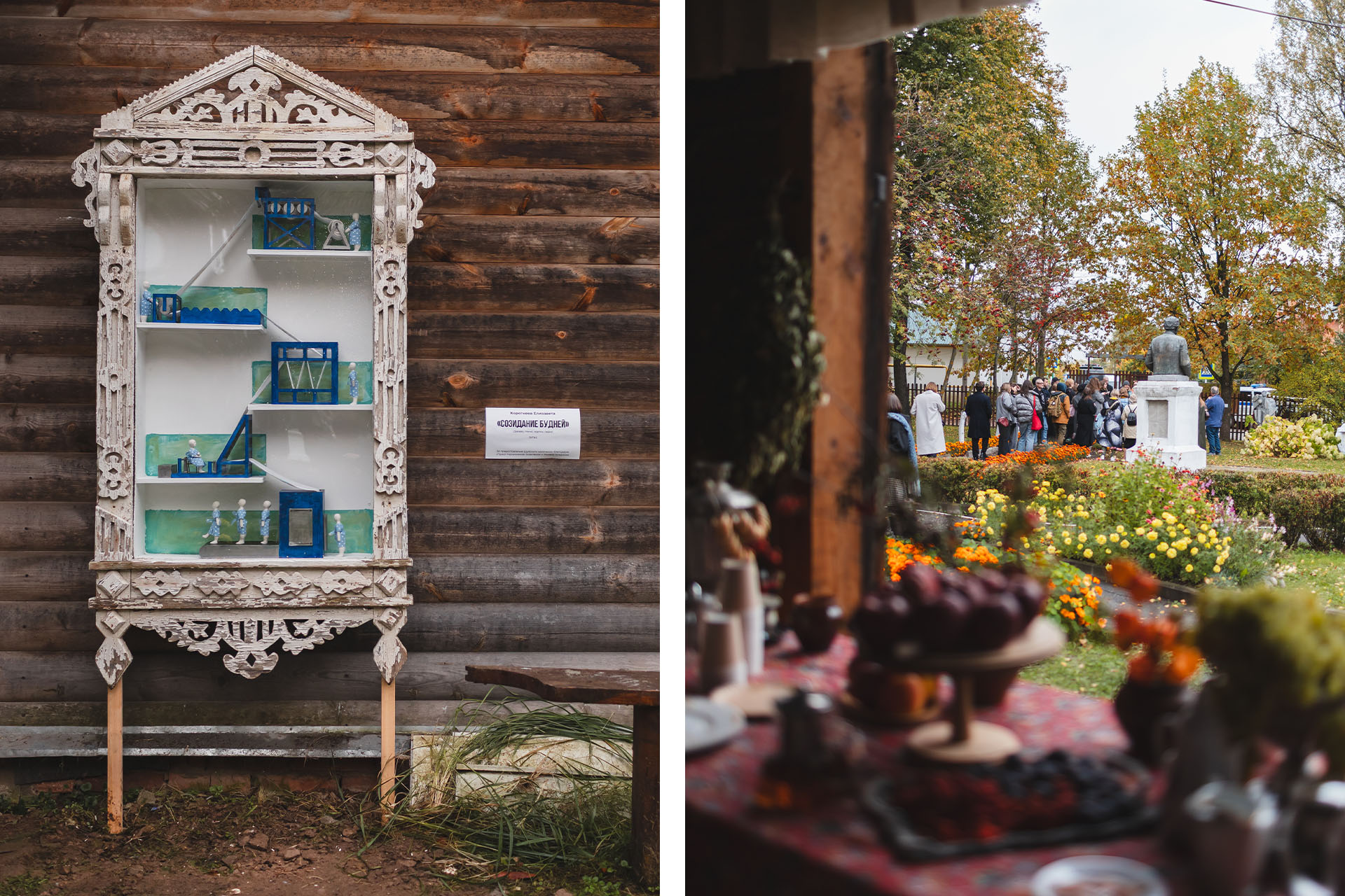 Скромный дом приходского священника Владимира Васильевича Цветаева, деда Марины Цветаевой, стал сценой студенческого эксперимента под руководством искусствоведа, помощника ректора ГИТИСа по выставочной работе Дмитрия Буткевича. Дирижёр из бетона, гипсовые фигуры в саду, тканевые картины — в основном студентки использовали для вдохновения творчество Марины Цветаевой, никогда, впрочем, в Талицах не бывавшей. Одна из самых пронзительных работ — инсталляция Полины Стариковой «Исповедь» — зеркало со строками «Реквиема», обрамлённое наличником и для большей интимности прикрытое тонкой полупрозрачной тканью. Никакой вышивки, ярких тканей, только фасад старинного деревянного дома и твоё отражение.