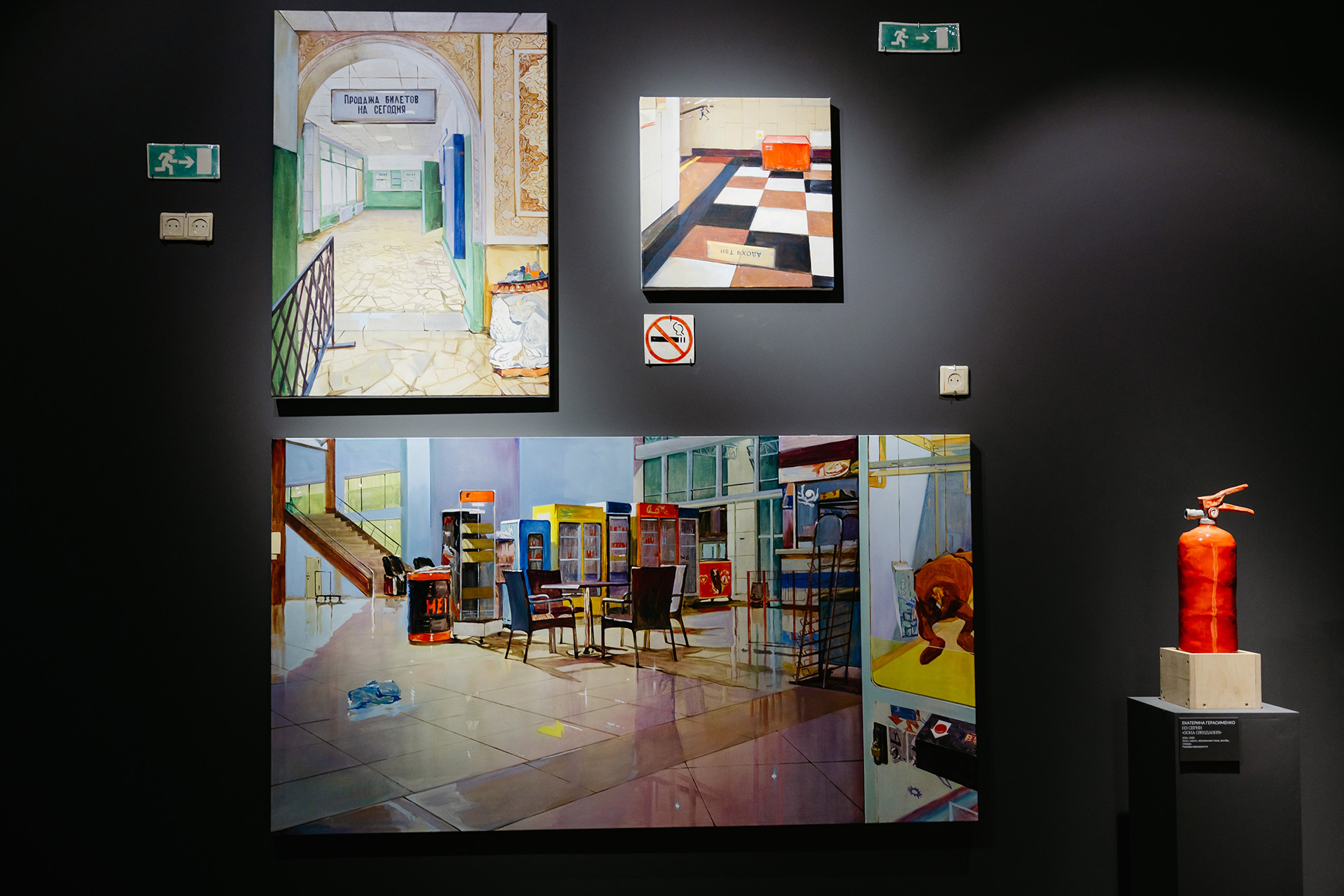 Экспозиция выставки «Лиминальные зоны», огнетушитель – Екатерина Герасименко из серии «Зона ожидания» Фото: Варвара Гертье