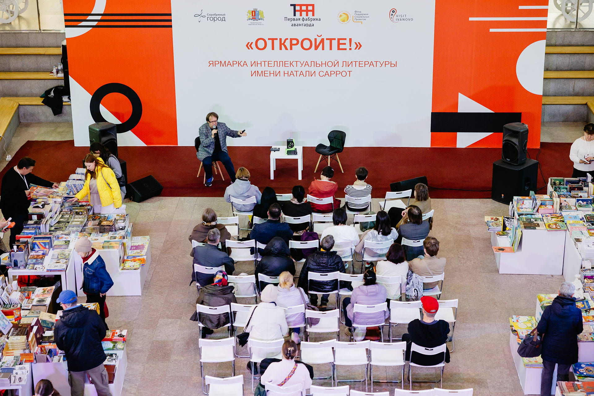 Ярмарка интеллектуальной литературы имени Натали Саррот «Откройте!» появилась во второй год его проведения — в 2019 году. «Команда понимала, что фестиваль должен не только давать жителям Иванова возможность приобщиться к современному искусству, но также и поговорить о нём, посмотреть соответствующие книги, пообщаться с их авторами, — рассказывает поэт, историк, куратор литературного направления фестиваля Юлия Горбунова. — Необходимость создания литературной ярмарки была обусловлена ещё и тем, что в Иванове не было и до сих пор нет ни одного независимого книжного магазина, где можно было бы найти книги, изданные не только гигантами отрасли, а небольшими, но заметными издательствами».