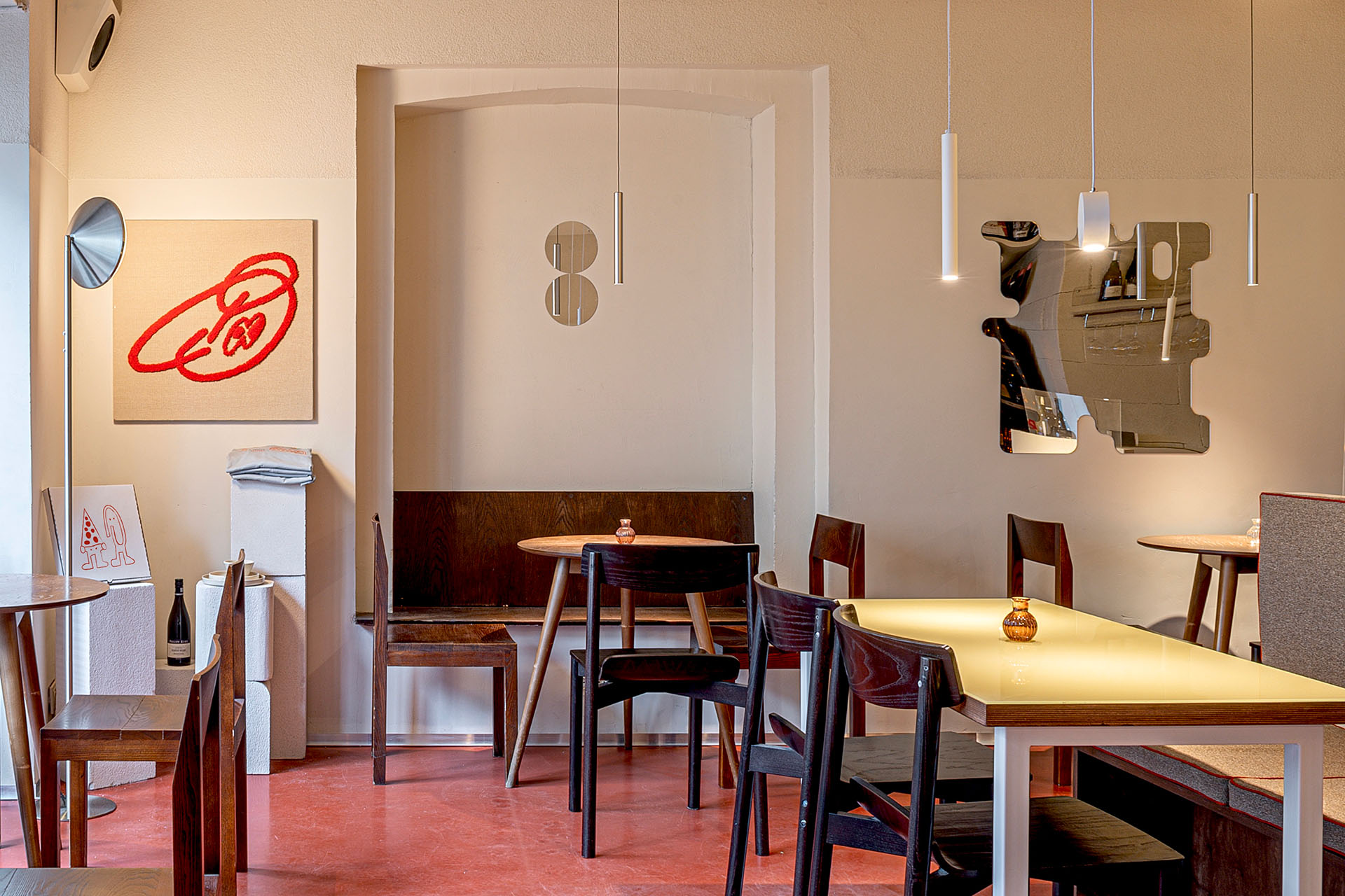 Очень лаконичный и очень душевный винный бар, куда днём можно забежать на обед или кофе, а вечером, никуда не торопясь, выпить бокал вина в ламповой атмосфере. Интерьер лаконичный, но с харизматичными деталями вроде полосатой датской вазы, табуреток русского бренда UCLAD, винтажных ламп с подлинными ажурными лампочками и итальянских стульев красного и оливкового цвета. Вывеску проекта создал бренд MILJO из Петрозаводска, а стены украшают работы современных художников Кирилла Гатавана и Гоши Хомича.