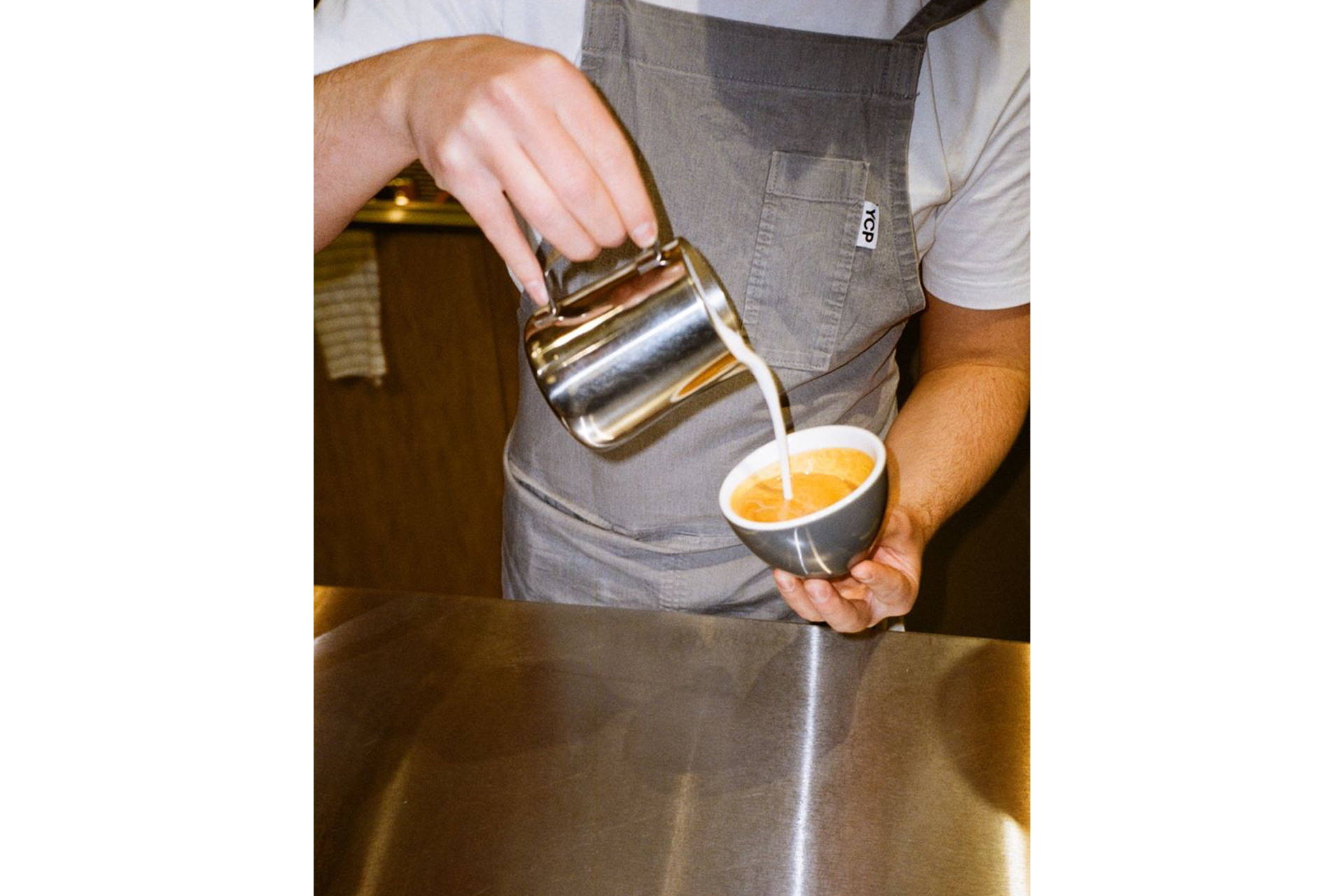 В марте в Холодильном переулке открылась кофейня с оригинальными прохладительными напитками: например, там есть лимонад с гранатом или кофейная вариация молочного стаута. В интерьере — хромированный металл кухонной утвари, массивная деревянная столешница, панорамные окна и нежно-розовый цвет стен. Отсылку к Испании подкрепляет музыка с Пиренеев. Посадочных мест внутри всего семь, все за единственным столом, но есть деревянные столики на улице. Барной стойки нет, бариста работает рядом с тем же общим столом, в шаге от посетителей. В меню — свежая выпечка, сэндвичи и небольшая подборка завтраков.
