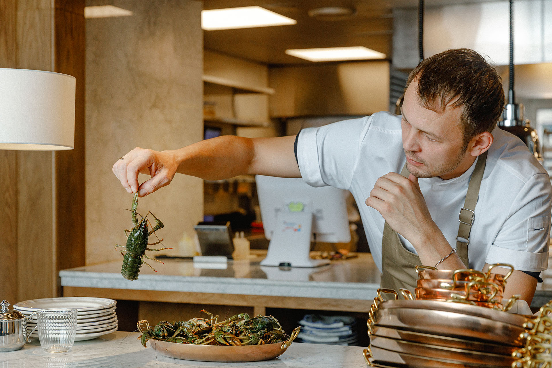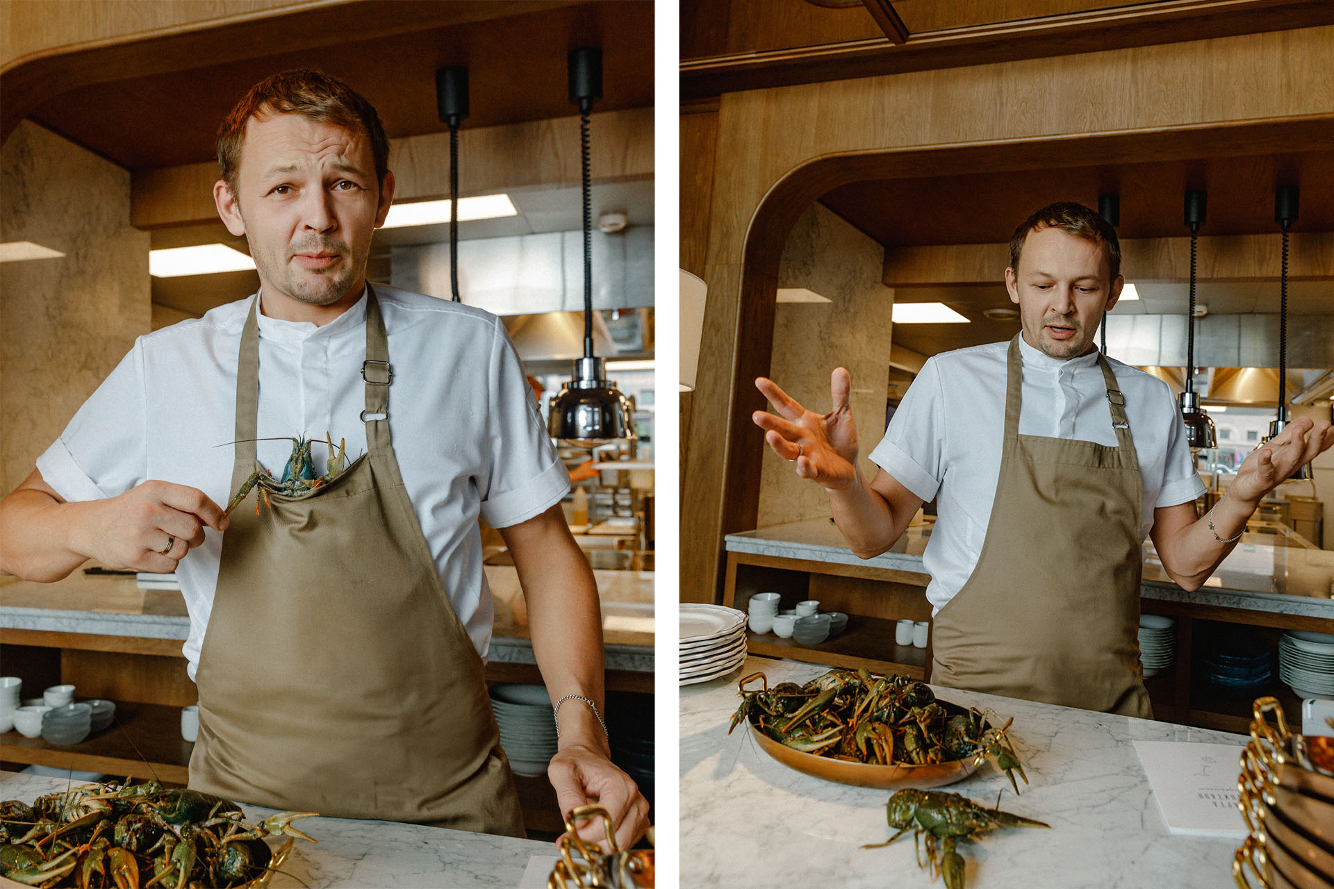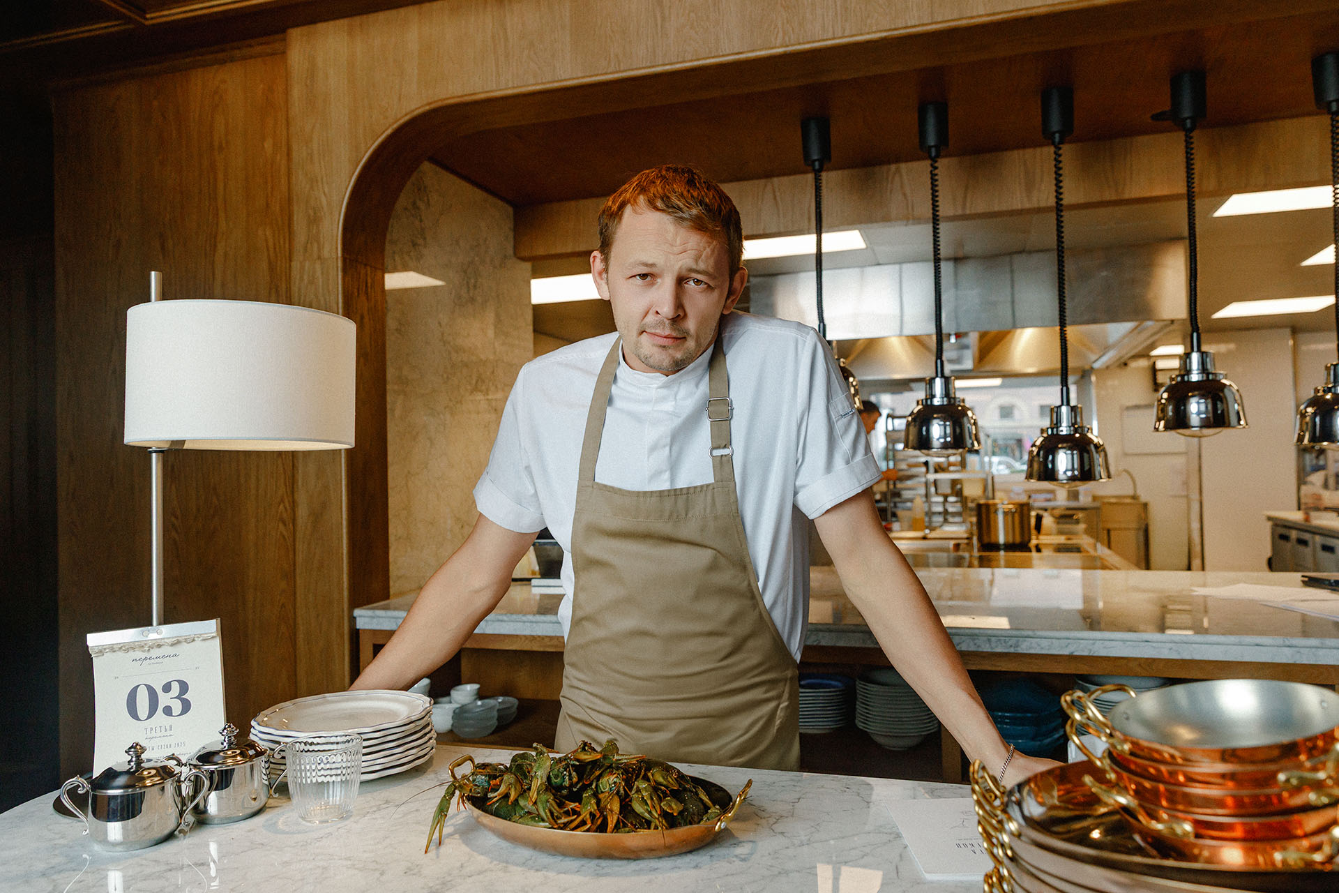 Вокруг российского продукта. Я не могу не взять эту достаточно насыщенную базу продуктов, которую мы не можем использовать в других ресторанах: грибы, грузди, ягоды, облепиха, брусника, квас, морсы. Коктейли наш шеф-бартендер Иван Миклухин будет делать на основе вот этих вкусовых сочетаний и ассоциаций. Ещё у нас есть такие штучки — шу с укропом. А если люди знают про меня чуть больше, чем про моё происхождение, они знают, что я ненавижу укроп. А сейчас у нас будет много укропа и другие такие вещи, которые я обычно не готовлю по ряду причин. Будет разная рыба: скумбрия, зубатка, осетрина. И всё это даёт импульс к поиску каких-то продуктов, которые я раньше не даже рассматривал, потому что они были для меня неактуальны. Например, почки кролика, свиной живот — мы пытались его готовить, но никто его не ел. Всё это мы будем делать в нашем привычном гастрономичном стиле. Попытки найти какой-то русский код у меня нет. Я не знаю, что это. Поэтому всё будем делать, как и всегда, с уважением, но без заигрываний.