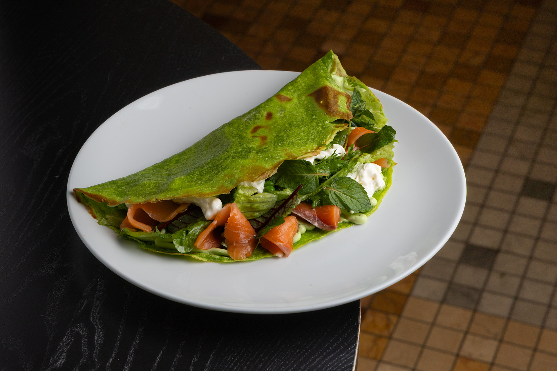 Шеф-повар Артём Мартиросов и в масленичном меню ни на шаг не отошёл от концепции ресторана. Большой зелёный блин он подаёт с салатом, страчателлой и слабосолёным лососем, блинный торт наполняет брынзой и печёными овощами с песто, а тыквенные блины — креветками и икорным соусом. Ещё среди начинок фигурируют пастрами и маринованные древесные грибы, говядина кимчи, краб и соус «Медовый васаби». На сладкое — конверты с кремом из арахиса, солёной карамелью, кешью и мороженым «Миндальное пралине».
