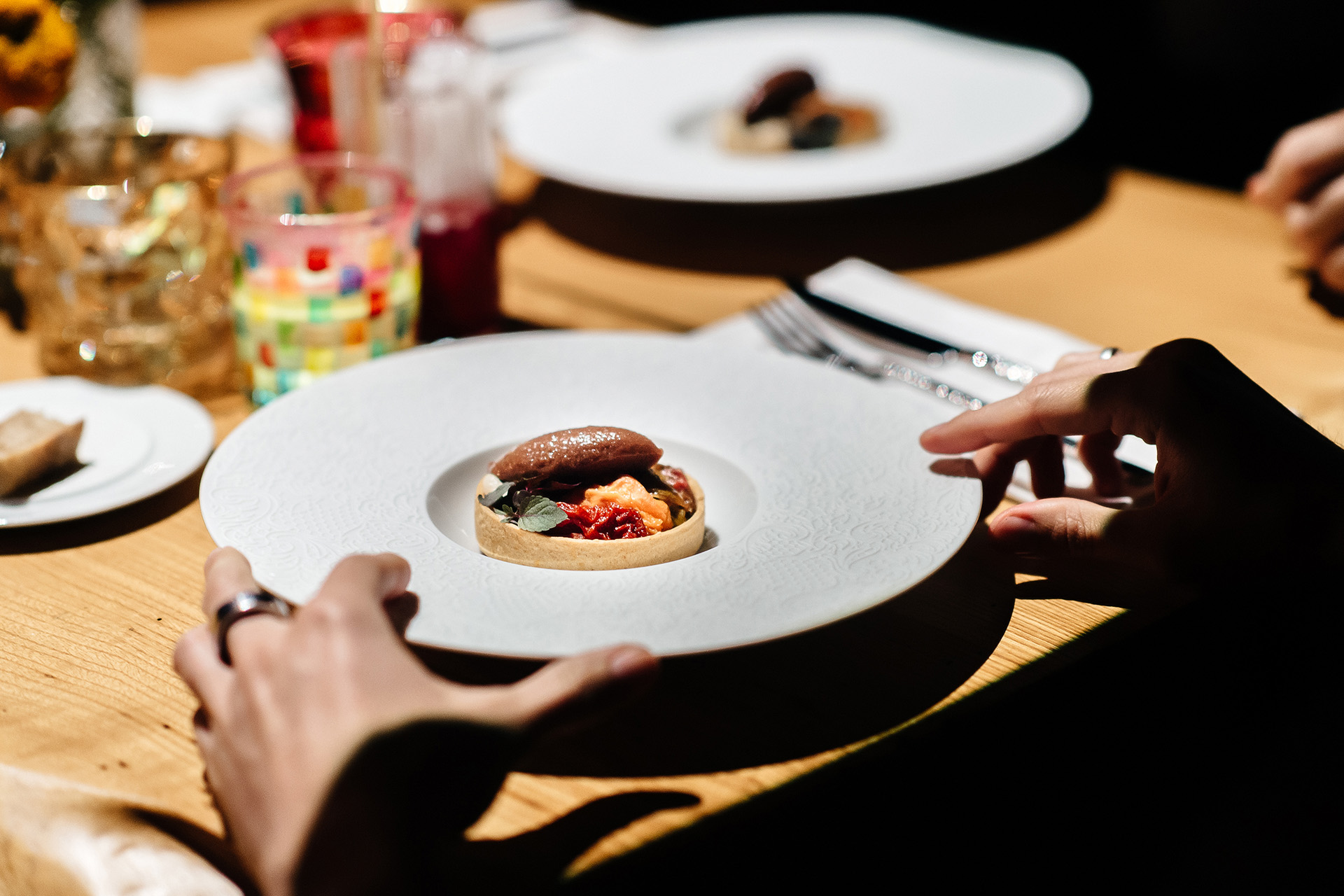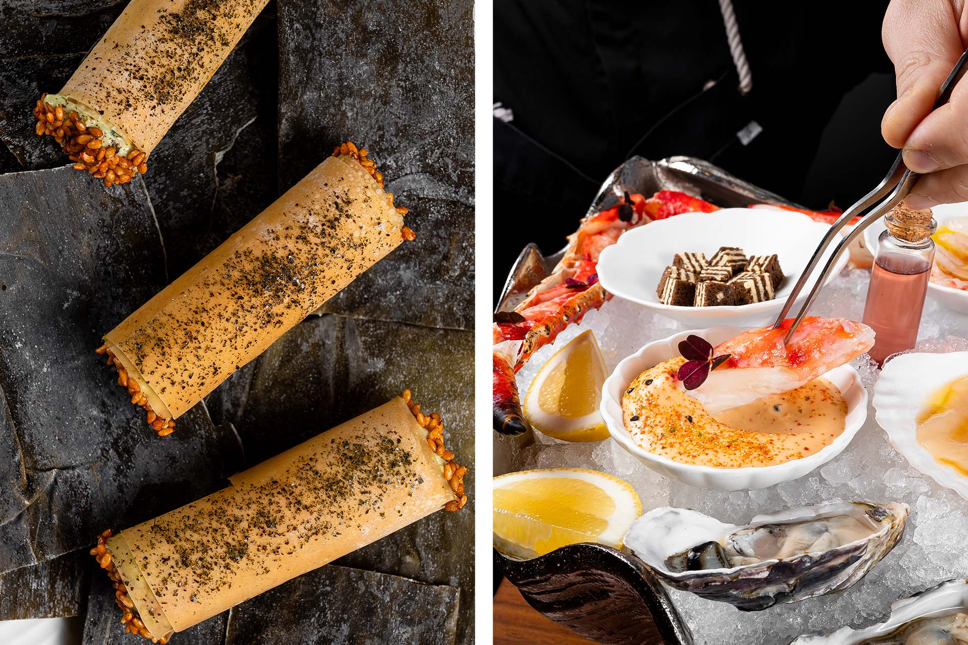 Ужин состоит из 12 блюд из 140 трав, овощей, ягод и корнеплодов. Визуальная форма блюд узнаваема и отсылает к общему культурному коду, но то, из чего сделаны блюда, поражает: например, кулебяку готовят с темпе и грибами ежовиками, гункан — с морковью кодзи, паштет из коджинатто — с белыми грибами. Все блюда — веганские, а коктейли — безалкогольные, создатели проекта во главу угла ставят пользу еды, осознанность её потребления и даже нейрогенез (создание новых нейронных связей). Для приготовления используются и самые древние техники вроде ферментации, и самые современные — в общем, всё, чтобы сохранить исходный вкус продукта и сделать его более выразительным. Отдельный акцент — художественные подачи, в каждом блюде замаскирована отсылка к той или иной картине. Словом, просвещение никогда ещё не было таким вкусным и интересным.