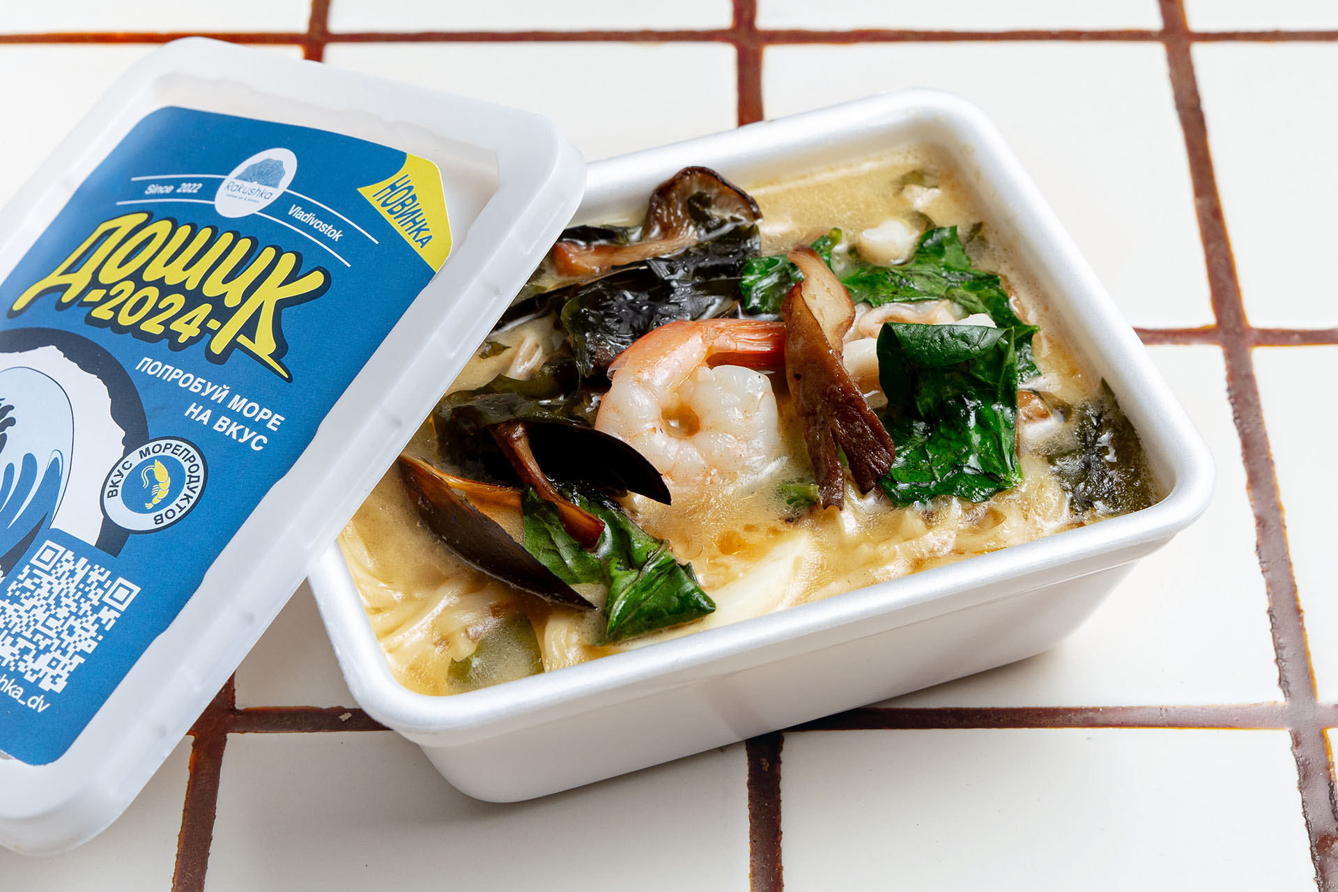 Ресторан-бар Rakushka специализируется на местных морепродуктах по разумным ценам. Логистика выстроена безупречно: гребешок доставляют с семейной фермы из заповедной зоны бухты Витязь, мидии и устрицы поступают из Хасанского района Приморского края, а рыба — из Японского моря. Бренд-шеф Никита Лоек старается не перегружать исходный продукт обилием соусов или излишней термической обработкой. Например, для фестиваля он подготовил специальное меню: свежий гребешок, намазка из его гонады, дальневосточный осьминог с подкопчённым пюре из батата и рыбным соусом. А самая притягательная и остроумная позиция — дальневосточный дошик. Поддерживает настроение портового города и интерьер ресторана: лодка, подвешенная под потолком, аквариум на полторы тонны морской воды с гребешками, устрицами, вонголе и ежами, светильники из садков и современное искусство на морскую тематику. Всё напоминает, что море рядом.