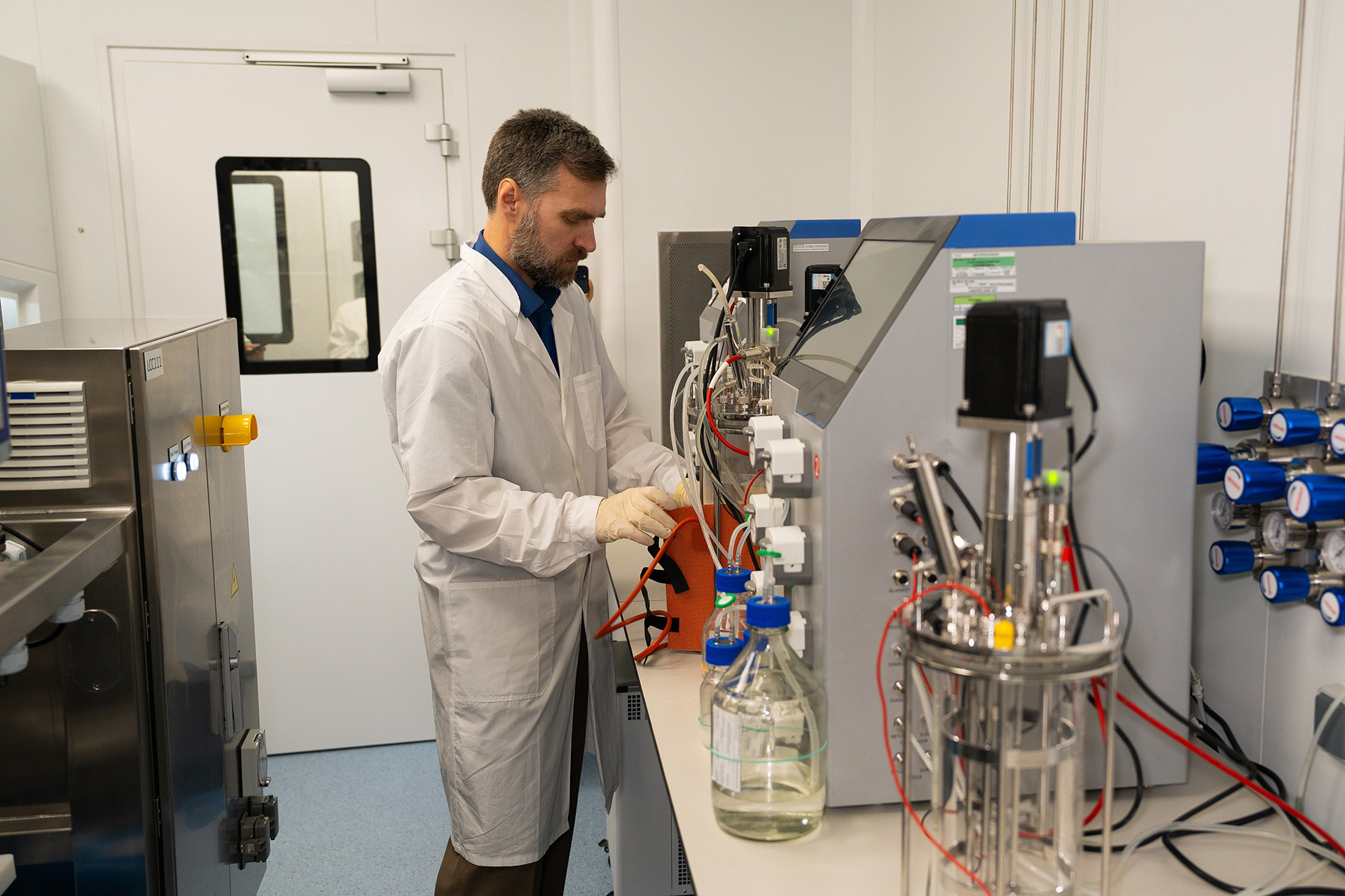 Директор по фармразработке «Нанолек» Алексей Екимов проводит экскурсию по стерильным залам нового цеха. За толстым стеклом — сверкающие стальные реакторы и хитросплетения труб. «Технологии у нас космические», — с гордостью говорит он.