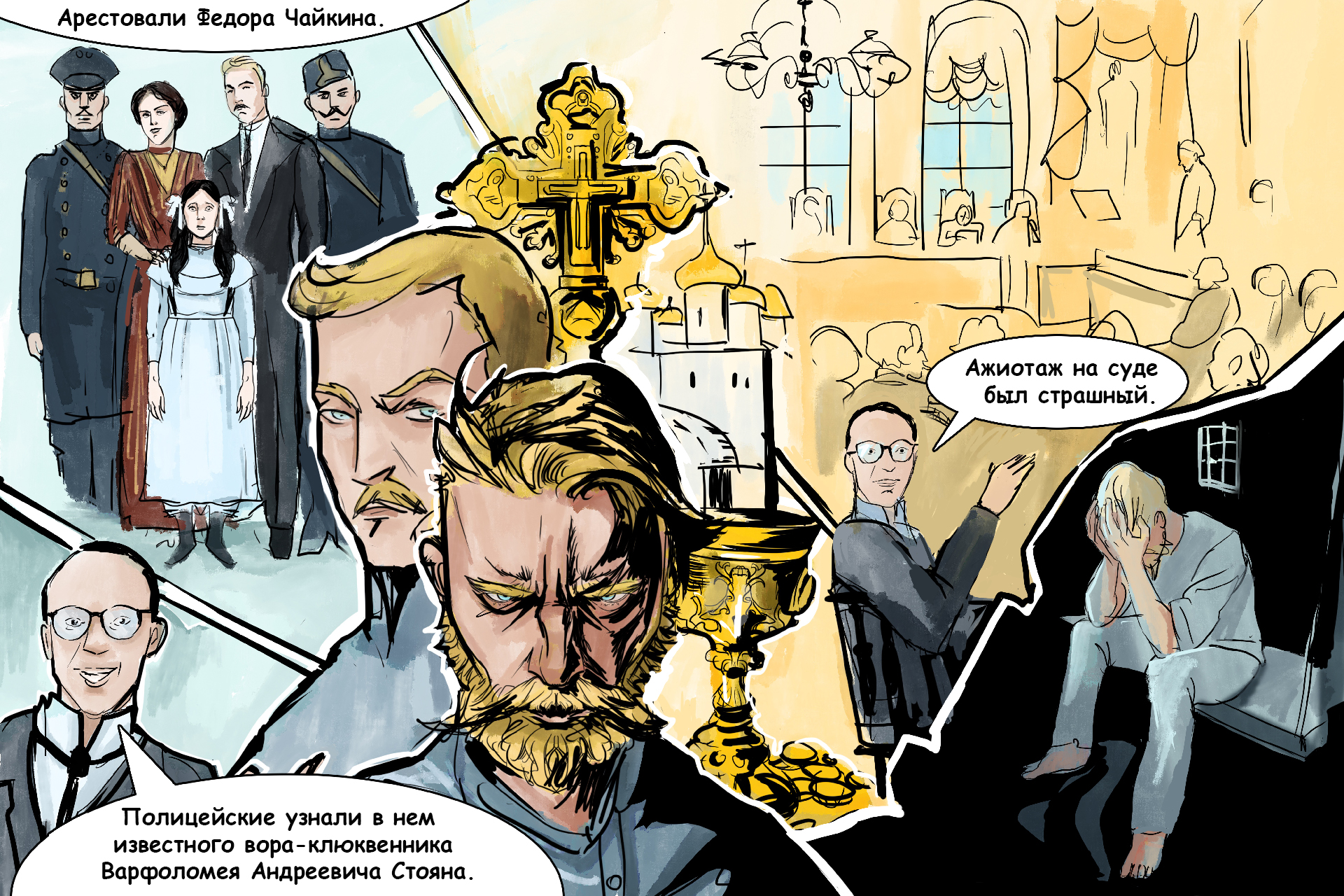Все шестеро начали давать показания. Все шестеро свои показания постоянно меняли. Сознаваться в грабеже никто не хотел, потому что в уголовном уложении того времени была статья под названием «Святотатство», и кража икон как раз под нее подпадала. Наказание по статье предполагало до 15 лет каторги.