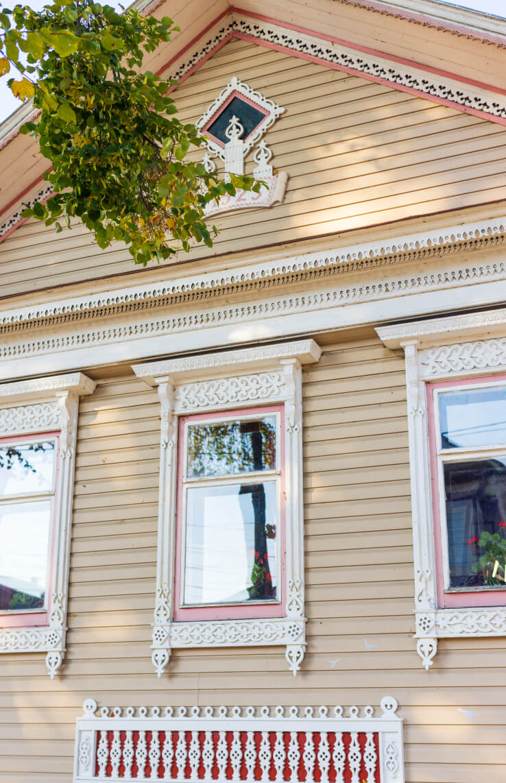 Рядом с «Галереей добра» находится Дом Дементьевой — одна из немногих построек в городе, где на фасаде сохранилась глухая городецкая резьба. Резчик по дереву Слава, с которым мы познакомились в одном из музеев, рассказал нам, что это за вид ручной работы.