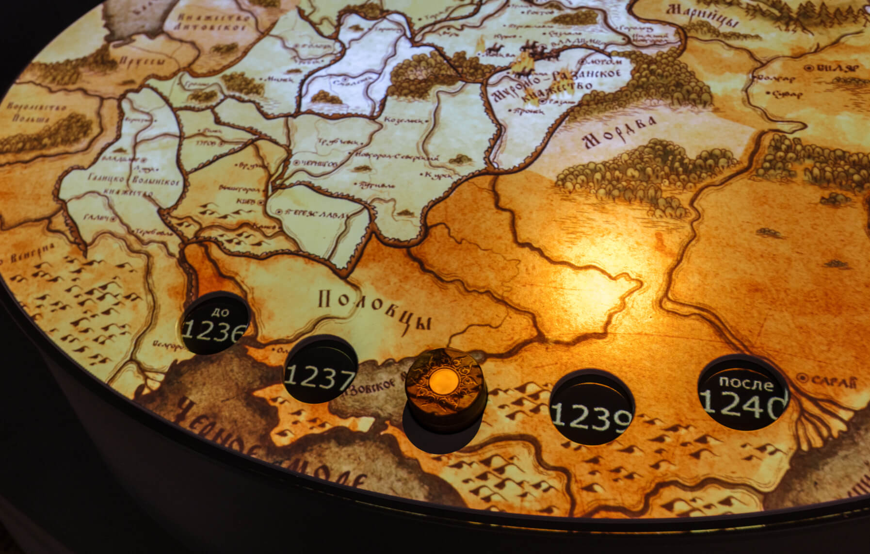 Казалось бы, история и краеведение не самые увлекательные темы для подрастающего поколения. Но в музее оказалось достаточно много детей, увлеченных интерактивной экспозицией. Нажимаешь кнопку — загорается одно княжество, другую — подсвечивается другая область карты. Экскурсию постоянно сопровождают макеты и красочные изображения, чтобы включалось внимание и работало воображение.