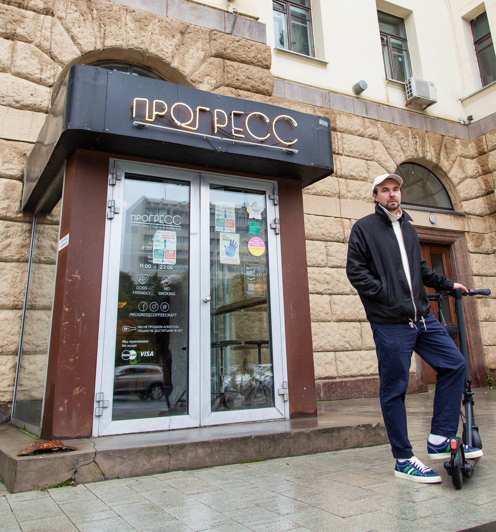 Кафе «Прогресс» открыл мой товарищ — Аркадий Зельцер. Мы дружили с ним из любви к винтажной мебели. Он привозил старую мебель из Европы в Москву на продажу и, как я понял, начал открывать кафе, чтобы эту мебель где-то выставлять. Одним из таких мест стал «Прогресс». Ходить в это кафе вошло у меня в привычку. Место, что уж скрывать, наеденное.